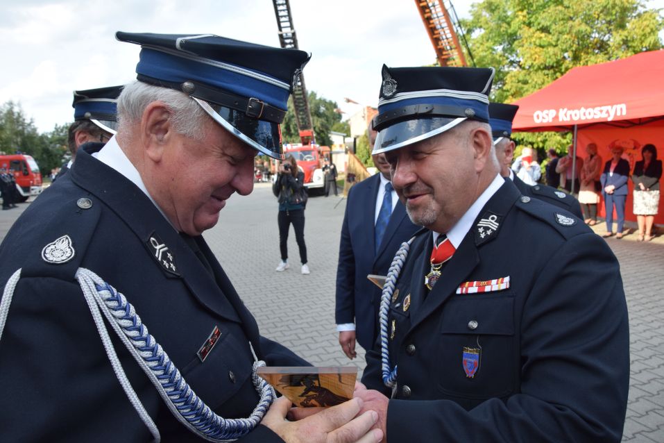 Wszystkich zaproszonych gości powitał druh Waldemar Florkowski. – Dzień straży pożarnej jest obchodzony od niepamiętnych lat w dniu święta patrona – świętego Floriana. Dzisiaj we wrześniu spotykamy się na bardzo ważnym wydarzeniu, jakim jest 150. rocznica powstania Ochotniczej Straży Pożarnej w Krotoszynie. W tym czasie odbyły się ważne dla jednostki wydarzenia. Rozwinęła się baza techniczna, która pozwoliła nam na zwiększanie i doskonalenie umiejętności taktycznych w działaniach przeciwpożarowych. Nastąpił systematyczny rozkwit jednostki. Druhny i druhowie od powstania OSP mieli na celu ratowanie życia i mienia ludzkiego. Podstawowym przesłaniem założycieli było nieść pomoc bliźniemu, o każdej porze dnia i nocy. To my, strażacy ochotnicy, z racji środowiskowej bliskości jesteśmy wielokrotnie pierwsi na miejscu zdarzenia. Pierwsi udzielamy pomocy poszkodowanym. Podejmujemy wiążące decyzje, jak przeprowadzić prawidłowo działania ratownicze, które muszą być zgodne z literą prawa i procedur. Druhowie muszą być zawsze gotowi do działania, poświęcając swój bezcenny czas, aby pomóc człowiekowi. Nie ma dla nas znaczenia, jaką kto wyznaje religię, opcję partyjną, czy jest wrogiem, czy przyjacielem. Nie ma nic cenniejszego jak poświęcenie samego siebie, by pomóc drugiemu człowiekowi. Zgodnie z hasłem „Bogu na chwałę, bliźniemu na ratunek”. Jestem przekonany, że założyciele i strażacy, którzy odeszli na wieczną służbę, są z nas dumni – oświadczył prezes OSP Krotoszyn.