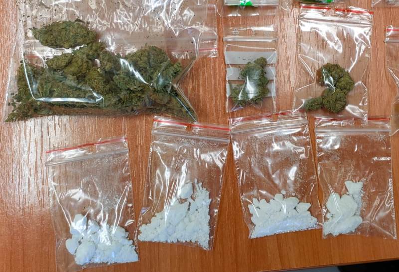 Policja wcześniej ustaliła, iż w jednej z miejscowości w gminie Krośnice mieszkający tam mężczyzna prawdopodobnie przechowywał w domu narkotyki. W jednym z budynków gospodarczych odkryto cztery woreczki z białym proszkiem oraz trzy z zawartością charakterystycznego suszu roślinnego koloru zielonego. Tester do wykrywania narkotyków wykazał, że biały proszek to amfetamina – w ilości ponad 190 porcji. Znaleziony susz to marihuana – z zabezpieczonej ilości można by pozyskać około 70 wolnorynkowych porcji.