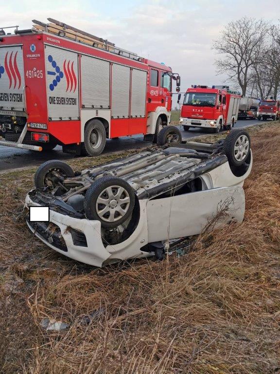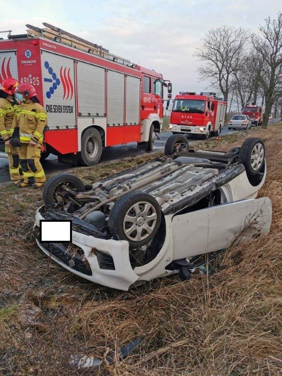 Po zabezpieczeniu miejsca zdarzenia strażacy pomogli ratownikom medycznym przenieść osobę poszkodowaną do karetki pogotowia, gdzie przeprowadzono dalsze badania. Po czynnościach dochodzeniowych policji strażacy postawili pojazd na koła, zweryfikowali wycieki płynów technicznych oraz odłączyli akumulator. Osobę poszkodowaną zabrano do szpitala. Działania służb ratowniczych trwały ponad dwie godziny.