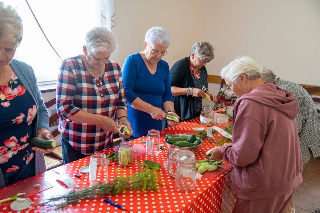Spotkanie rozpoczęło się od krótkiego wprowadzenia przez panią Emilię. Goście zapoznali się z ogólnymi zasadami domowej produkcji kiszonek. Przy okazji rozmawiano o ich dobroczynnym oddziaływaniu na organizm człowieka. Potem przyszedł czas na samodzielną pracę przy tworzeniu własnego słoika z kiszonymi ogórkami.