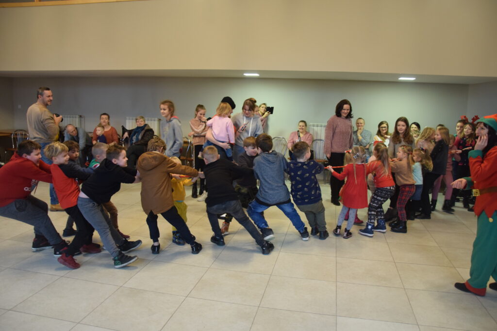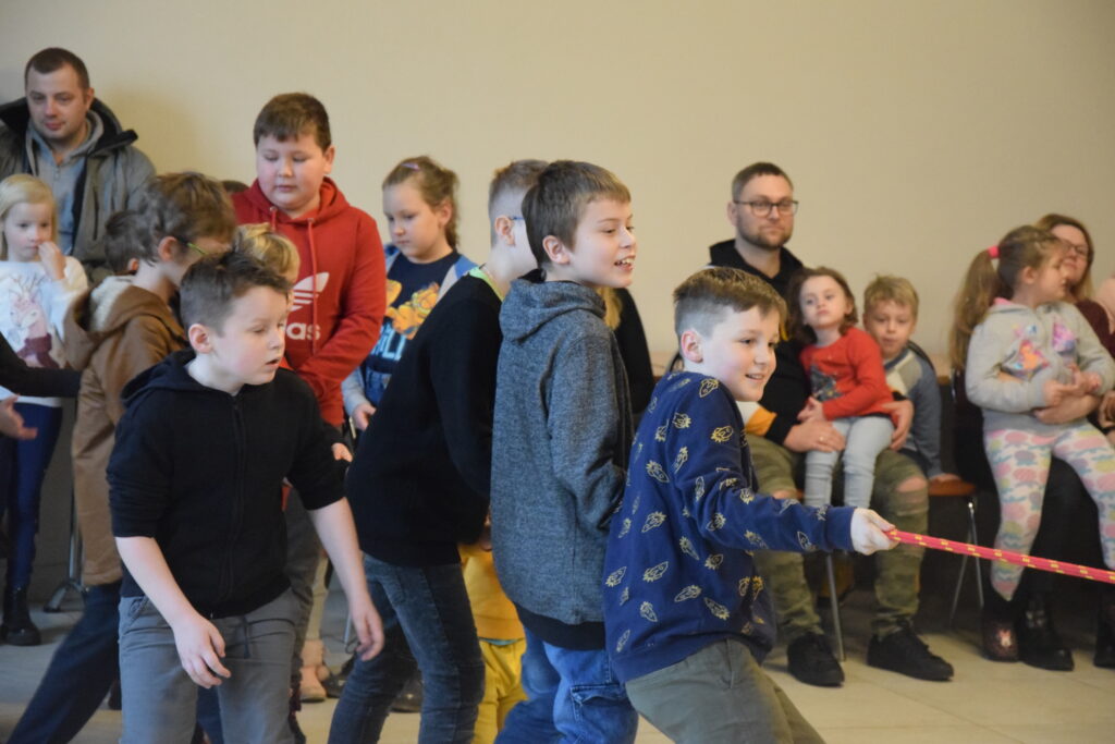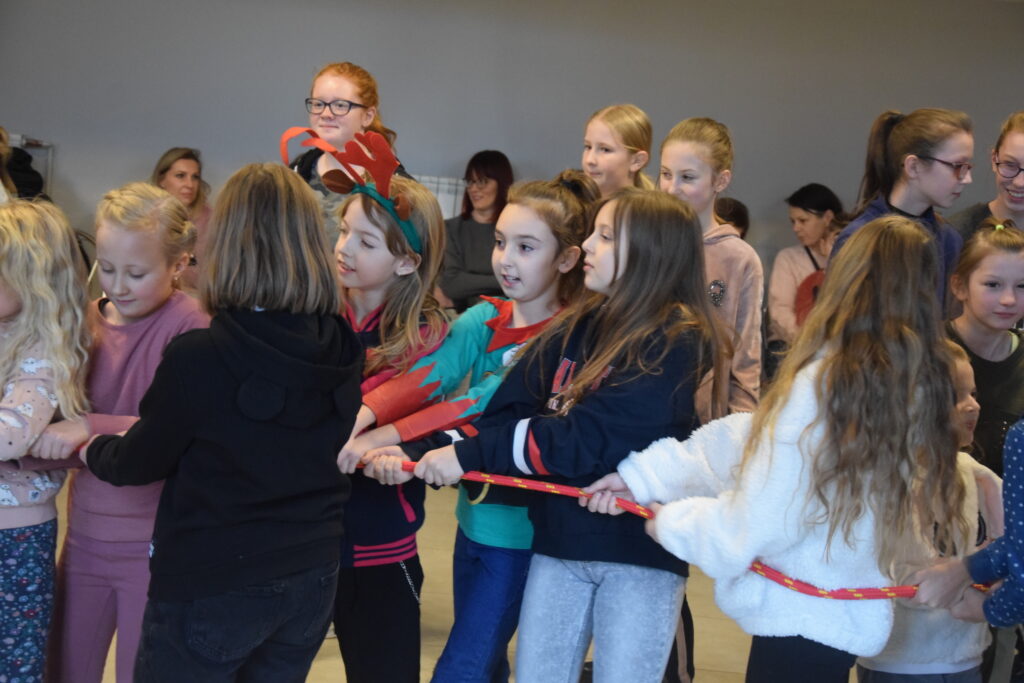 Dla najmłodszych przygotowano zajęcia ruchowe i taneczne, gra w szalupy czy drużynowe formowanie bałwanów. Było także klasyczne przeciąganie liny z podziałem na płeć. Znacznie liczniejsza ekipa dziewcząt zdołała pokonać dzielnie walczących chłopców.