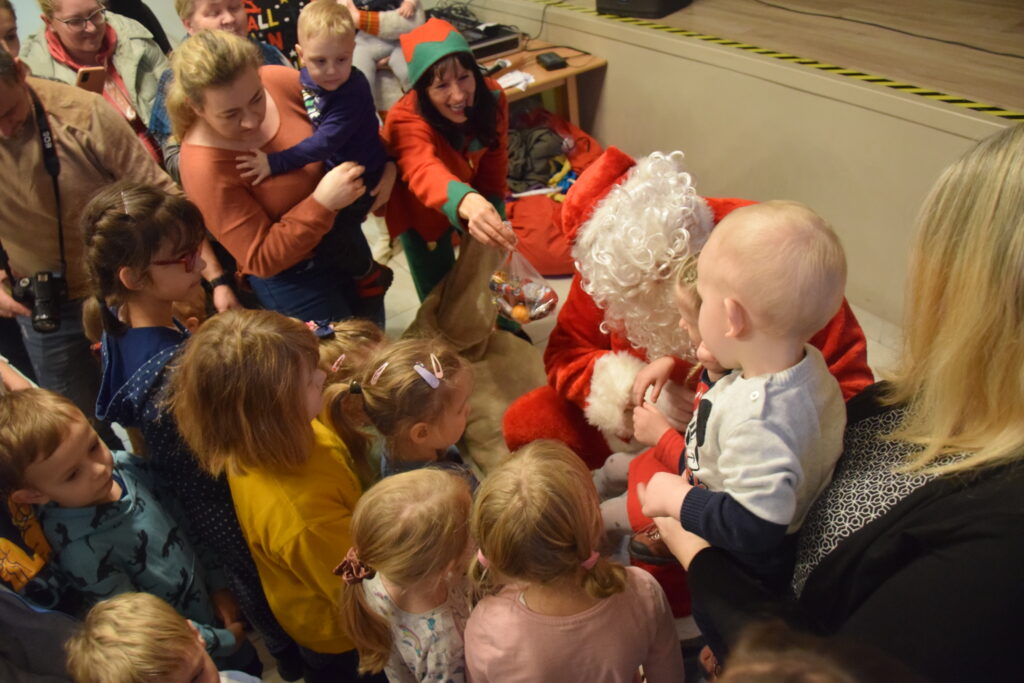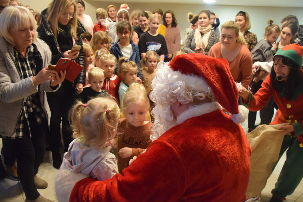 Punktem kulminacyjnym było pojawienie się znanej postaci w czerwonym płaszczu i z długą białą brodą. Mikołaj zapraszał dzieci pojedynczo, poczynając od tych, których rodzice jeszcze trzymali na rękach. Na szczęście w tym roku rózga była niepotrzebna, a każde dziecko otrzymało upominek.