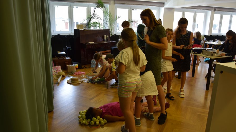 Rolę tłumacza podczas zajęć pełniła Żaneta Kordus. Półkolonie rozpoczęto od warsztatów mydlarskich, chemicznych, a także pokazu iluzji przygotowanego przez firmę Star ART. Uczestnicy z pomocą animatora tworzyli mydełka: wybierały ich kształty, kolory, zapachy i dodatki. W czasie pokazu magii zaprezentowano sztuczki związane z ze znikaniem, pojawianiem się i zmienianiem kształtów.