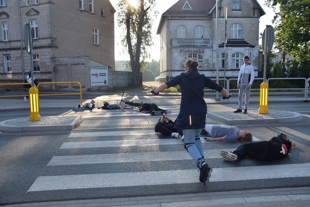 – To z pewnością ciekawy i bogaty w treści edukacyjne oraz profilaktyczne projekt, dający wymierne korzyści i pokazujący profilaktykę w zupełnie innym niż dotychczas wymiarze. W założeniu ma zmusić ludzi do myślenia i przestrzegania prawa. Scenki rozgrywać się będą w przestrzeni miejskiej i będą bardzo spontaniczne, choć z określoną tematyką i czasem. Zaczęliśmy od akcji związanej z bezpieczeństwem na przejściach dla pieszych, a następnie pochylimy się nad problemami bezpieczeństwa na cmentarzach, przemocy domowej, hejtu i zagrożeń w internecie oraz używek. Uczniowie odgrywać będą specjalnie przygotowane sceny, które mają zapadać w pamięci tych, którzy akurat będą w danym miejscu, ale i pozostawiać ślad, który będzie widoczny przez dłuższy czas. Jestem przekonany, że tego typu profilaktyka wpisze się na stałe w kalendarz naszych działań – powiedział Marcin Szyndrowski, dyrektor Niepublicznej Szkoły Podstawowej w Krotoszynie oraz inicjator akcji.