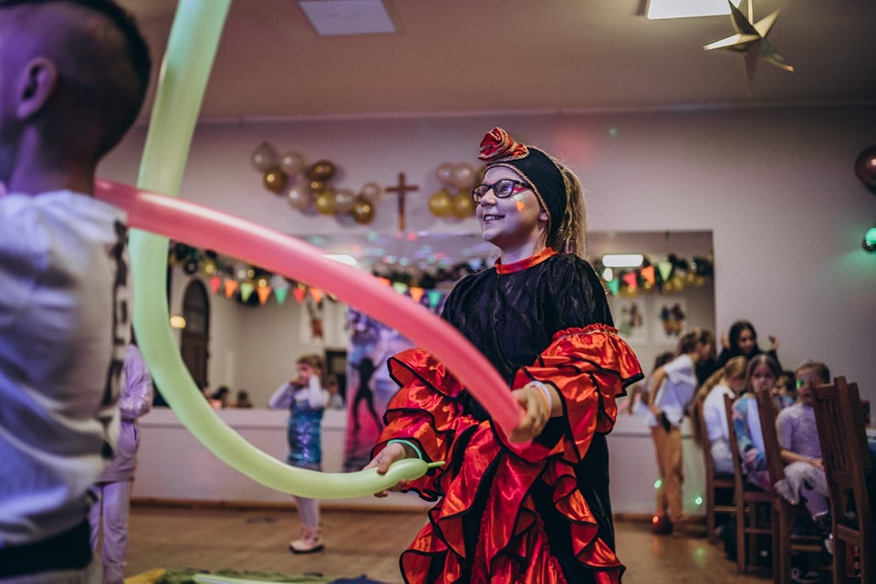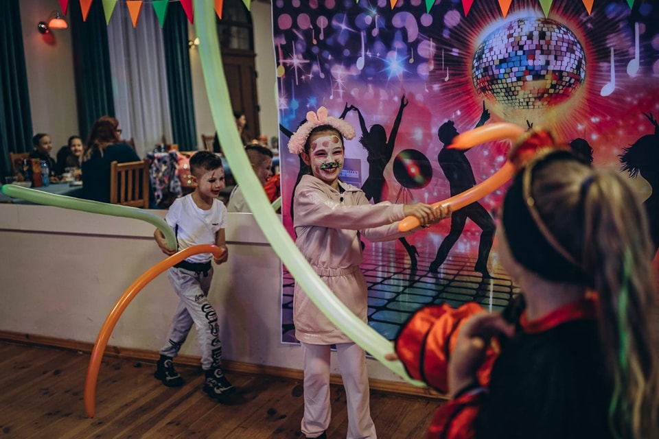 Zabawa rozpoczęła się o godzinie 17:00, a poprowadzili ją doświadczeni animatorzy z grupy Animki. Dzięki ich energii i pomysłowości uczestnicy bawili się przy licznych grach, konkursach i zabawach, które wywoływały salwy śmiechu. Jednym z najbardziej wyjątkowych momentów wieczoru było fluoparty – zabawa w świetle UV, która zamieniła salę w neonowy świat pełen kolorów i magii.