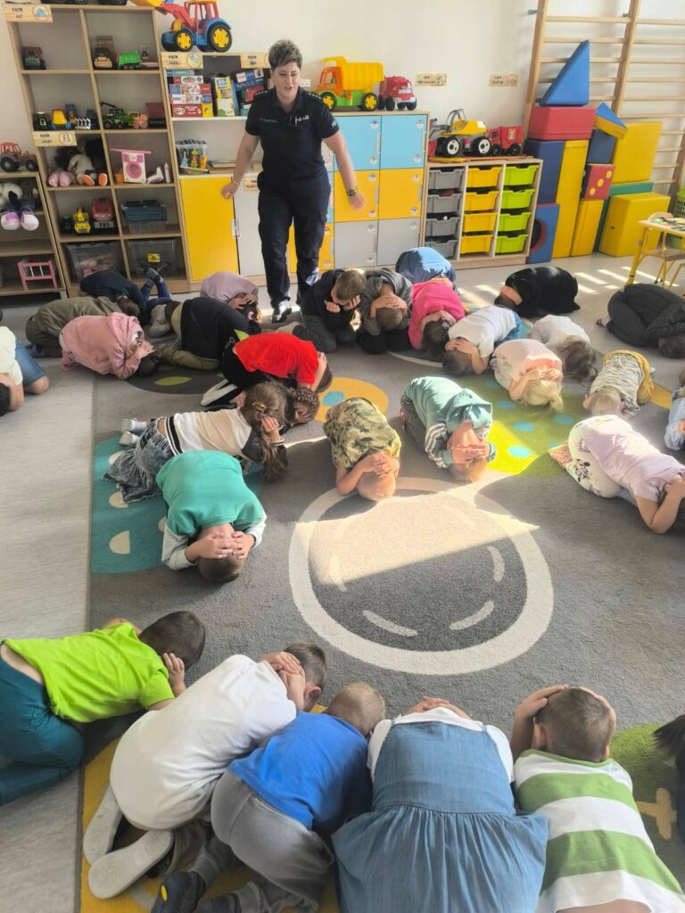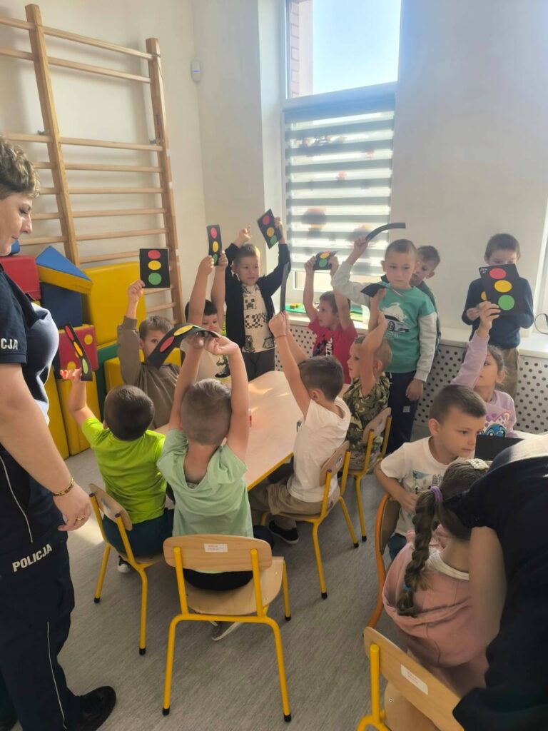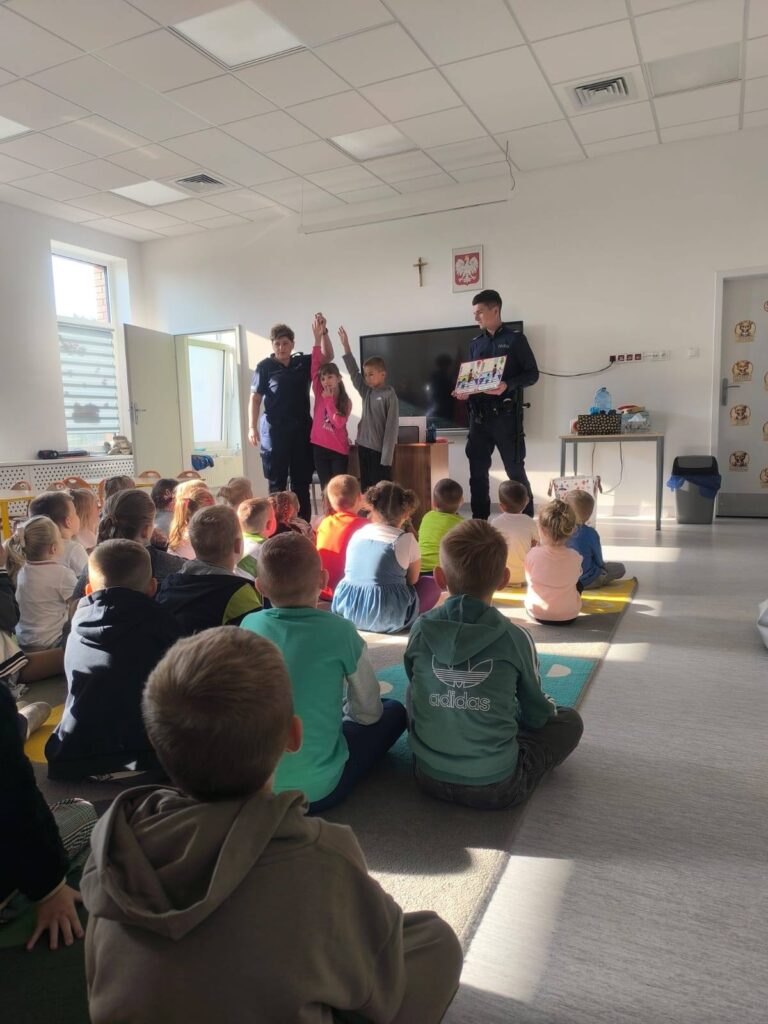 Podczas spotkania przedszkolaki i uczniowie zdobyli cenną wiedzę na temat bezpiecznego poruszania się po drogach i zachowania w niebezpiecznych sytuacjach. Policjanci omówili również kwestię kontaktu z osobami obcymi, podkreślając, że nie należy otwierać drzwi nieznajomym ani podejmować z nimi rozmowy. Spotkanie zakończyło się wspólnym śpiewaniem piosenki, dzięki której dzieci mogły utrwalić sobie numer alarmowy 112, pod który należy dzwonić w razie nagłych sytuacji. Spotkanie z policjantami w ramach akcji „Bezpieczna droga do szkoły” było nie tylko edukacyjną lekcją, ale także ważnym krokiem w budowaniu świadomości bezpieczeństwa wśród najmłodszych. Z pewnością przyczyni się do większego poczucia bezpieczeństwa w codziennym życiu dzieci.