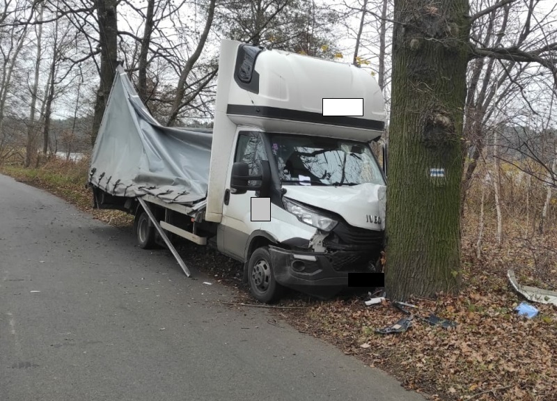 Policjanci, którzy przybyli na miejsce zdarzenia, ustalili, że 22-letni mieszkaniec gminy Krośnice, kierując busem marki Iveco Daily, stracił panowanie nad pojazdem, który zjechał na lewe pobocze i uderzył w przydrożne drzewo. Na szczęście kierowcy nic się nie stało, ale samochód został poważnie uszkodzony.