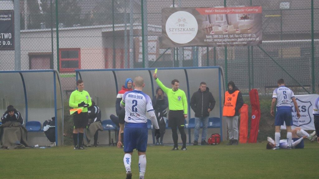W drugiej części spotkania oba zespoły usilnie starały się wyjść na prowadzenie. Groźnie strzelali m.in. K. Czabański i W. Kamiński, jednak bez skutku. Na boisku było coraz bardziej nerwowo, arbiter nie szczędził zawodnikom kolorowych kartoników. W efekcie obie drużyny kończyły mecz w dziesiątkę. Najpierw drugie „żółtko” zobaczył jeden z graczy Warty, a po chwili murawę z tego samego powodu musiał opuścić kapitan gospodarzy – Oskar Maciejewski. Pod koniec konfrontacji bliski szczęścia, po dośrodkowaniu Szymona Pacholskiego, był Robert Nowakowski, lecz jego strzał głową był minimalnie niecelny. Wynik już się nie zmienił i starcie zakończyło się podziałem punktów.