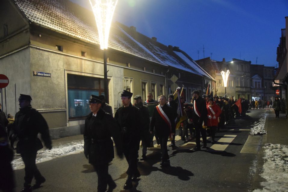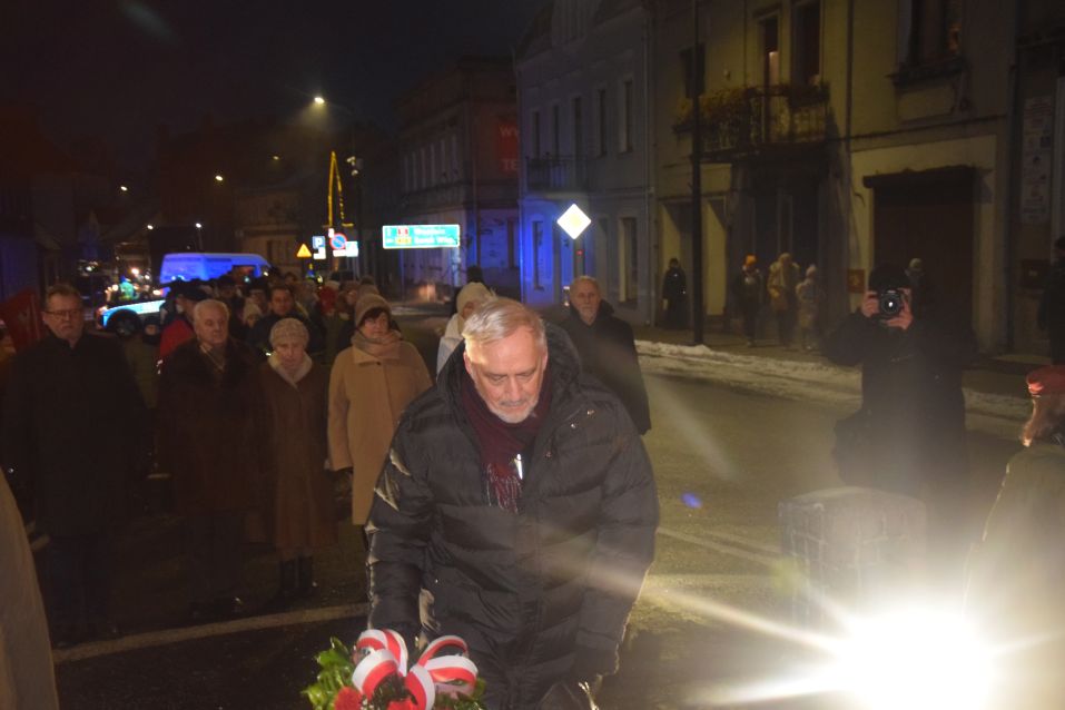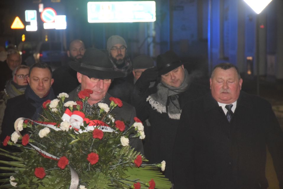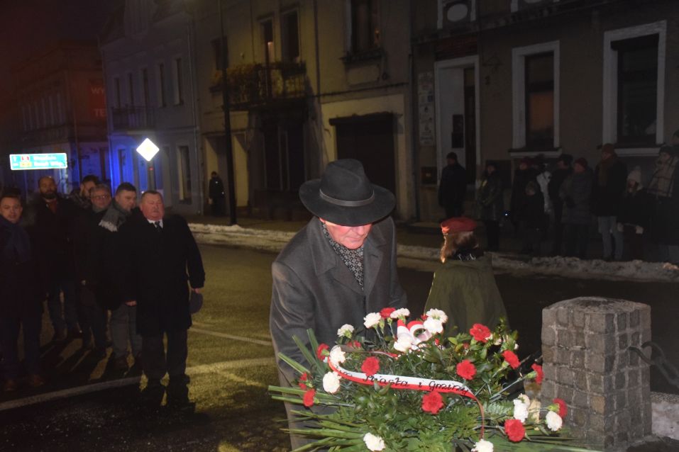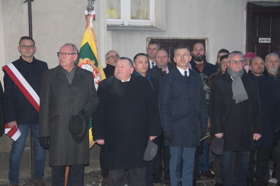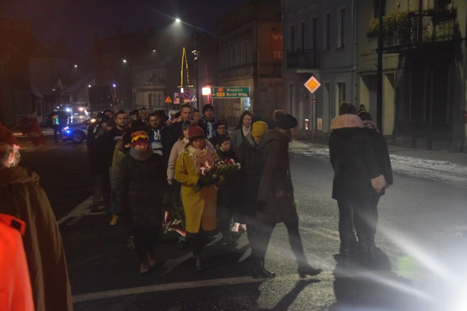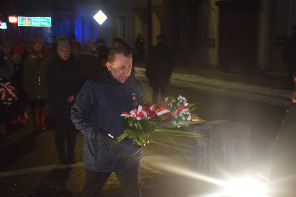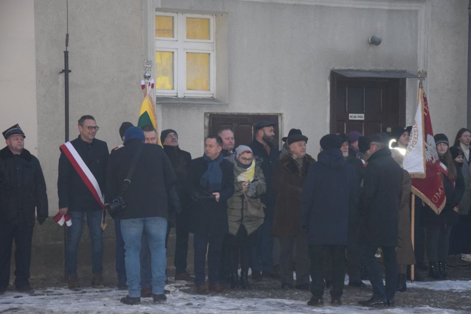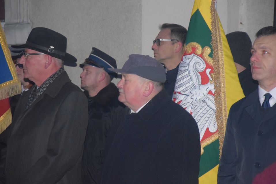 Następnie uczestnicy uroczystości wyruszyli z dziedzińca zamkowego przed pomnik Wolności, by złożyć kwiaty i oddać hołd bohaterom. Koźmińska Orkiestra Dęta zagrała hymn Polski, a następnie wieńce przed pomnikiem złożyli przedstawiciele władz samorządowych, szkół czy stowarzyszeń.