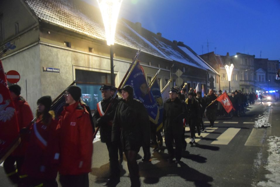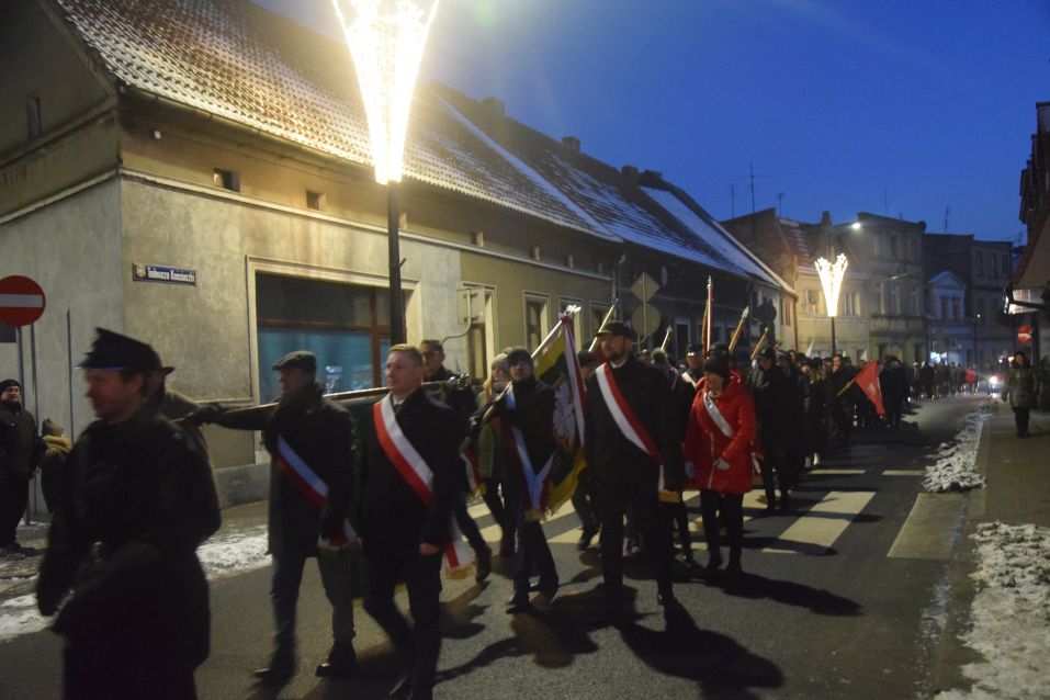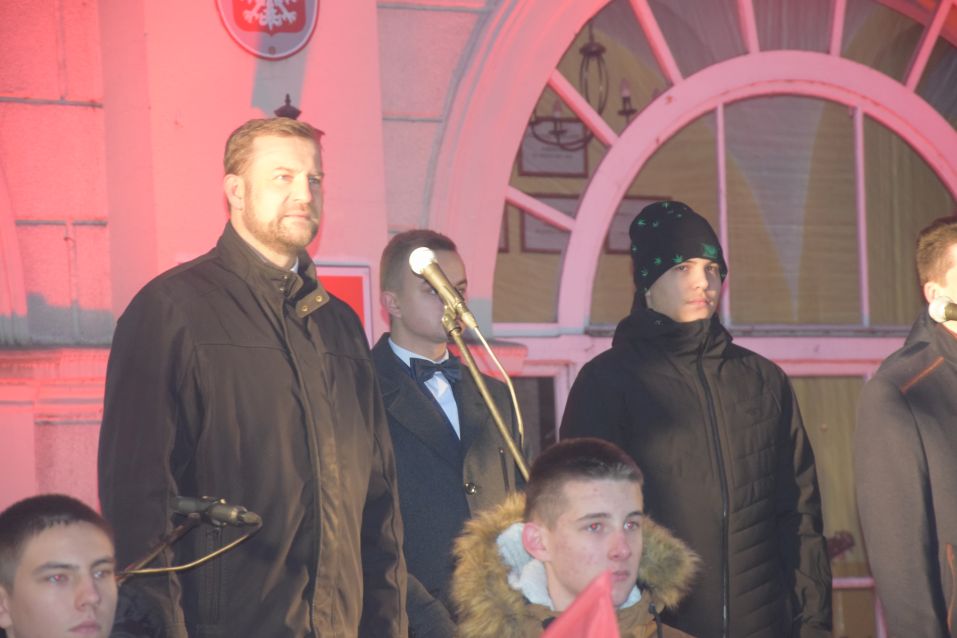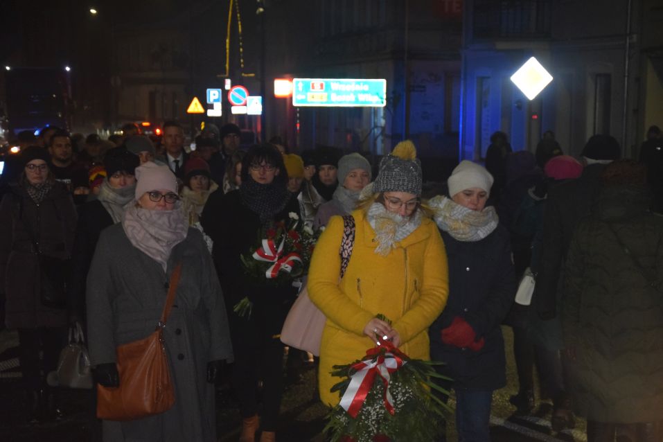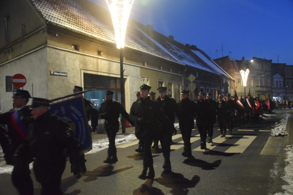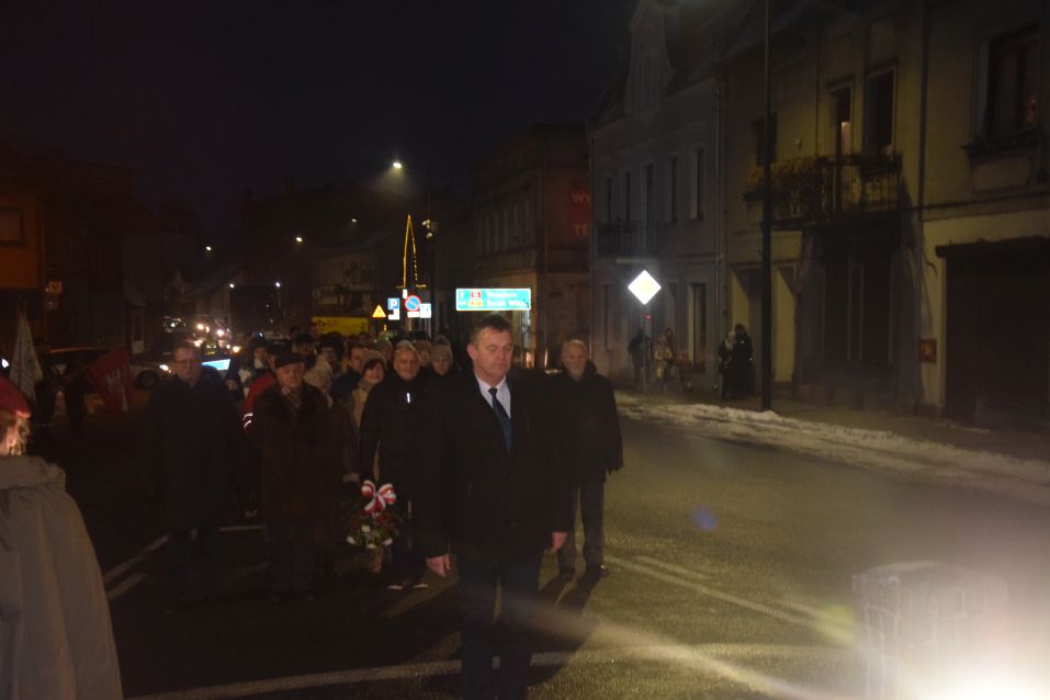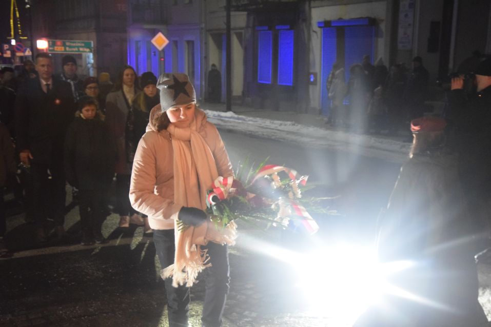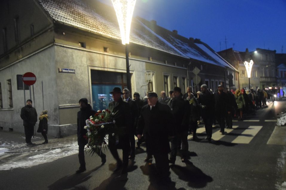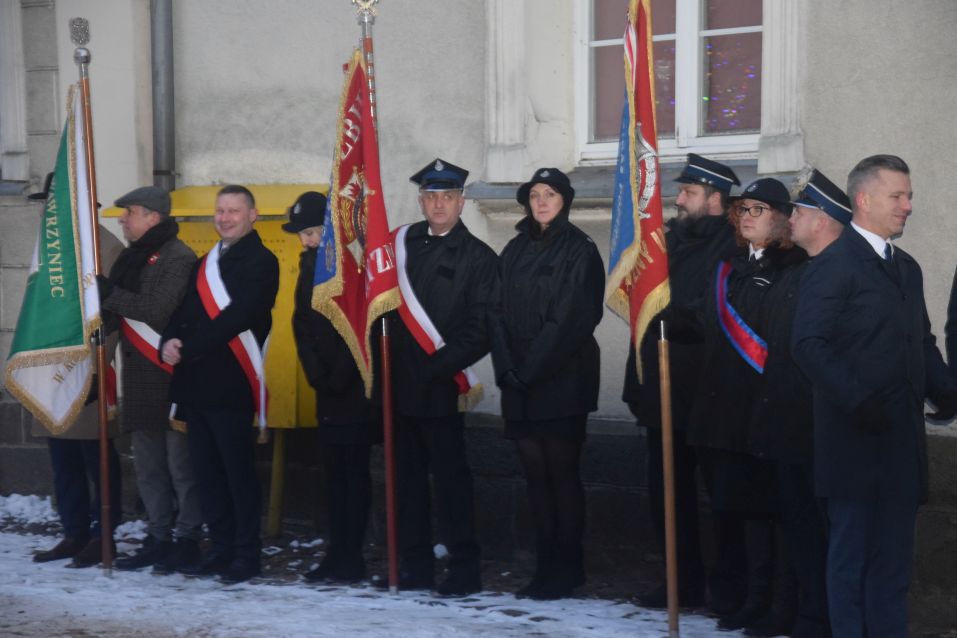 Następnie uczestnicy uroczystości wyruszyli z dziedzińca zamkowego przed pomnik Wolności, by złożyć kwiaty i oddać hołd bohaterom. Koźmińska Orkiestra Dęta zagrała hymn Polski, a następnie wieńce przed pomnikiem złożyli przedstawiciele władz samorządowych, szkół czy stowarzyszeń.