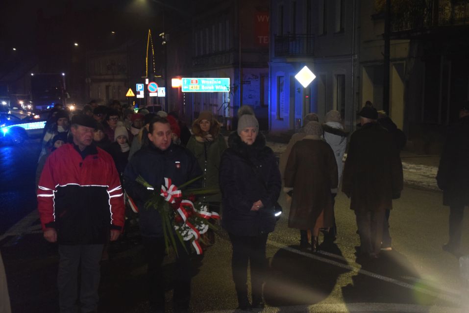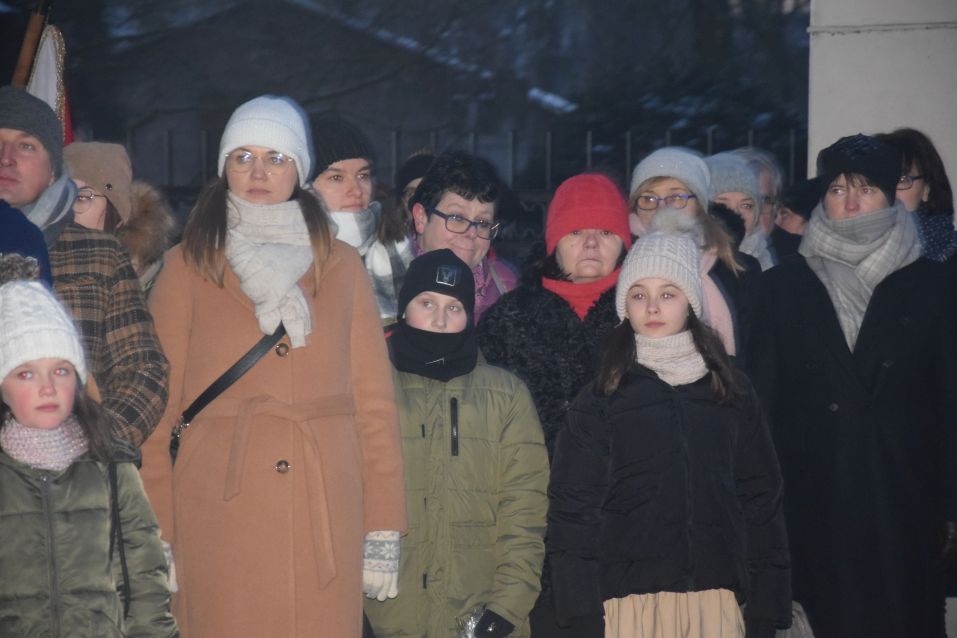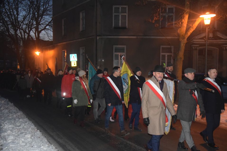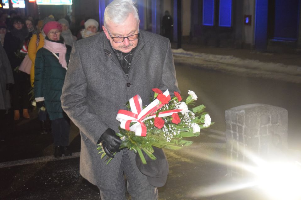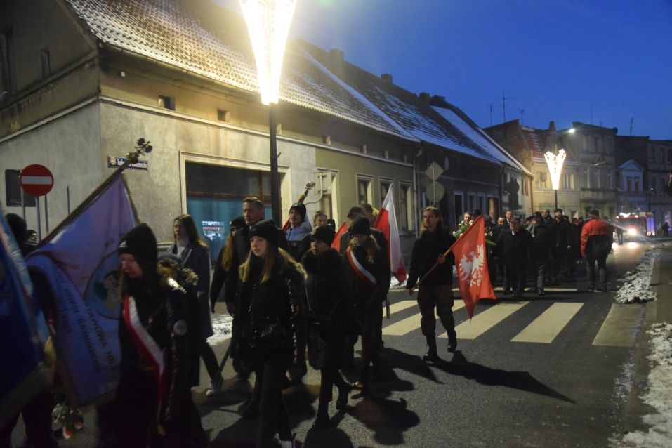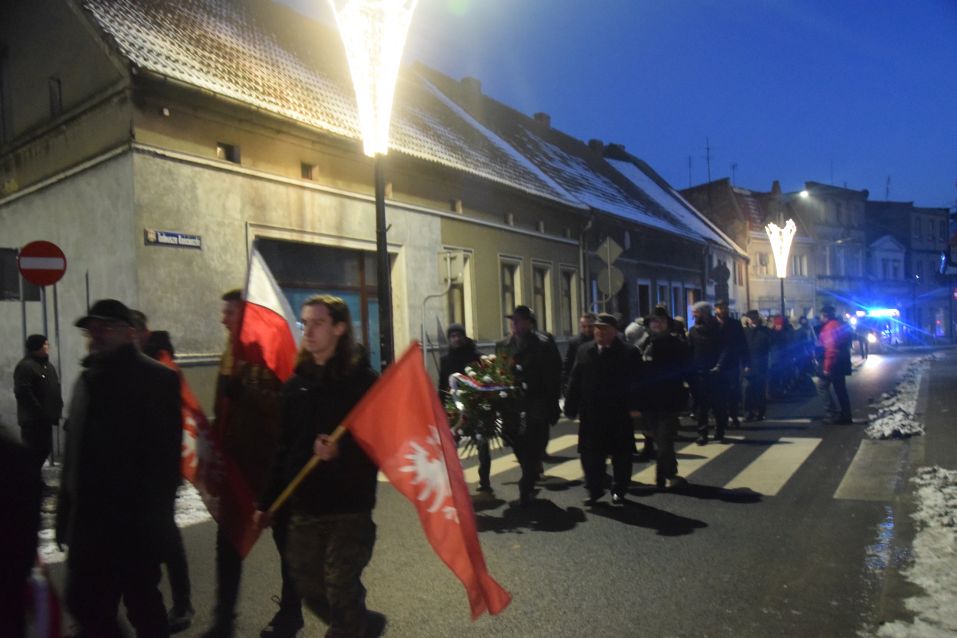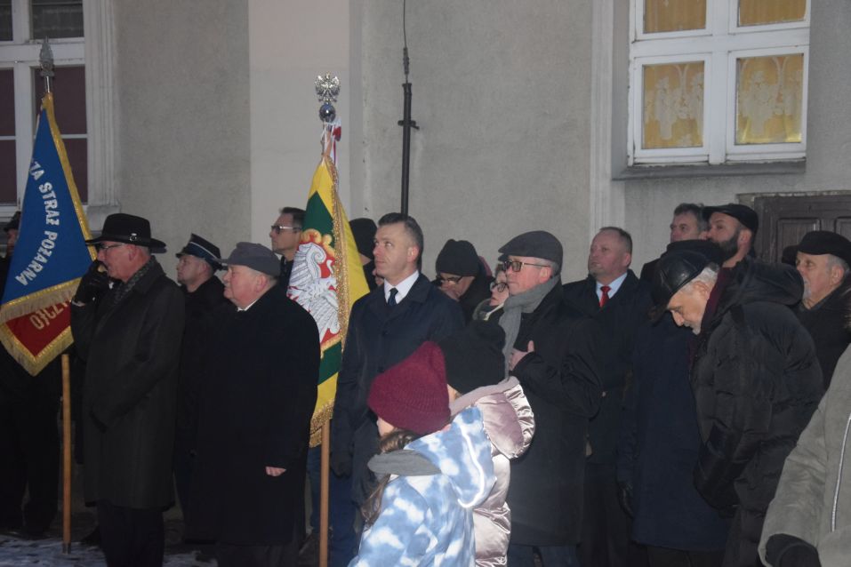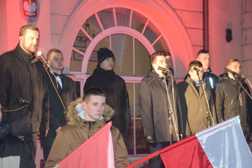 Następnie uczestnicy uroczystości wyruszyli z dziedzińca zamkowego przed pomnik Wolności, by złożyć kwiaty i oddać hołd bohaterom. Koźmińska Orkiestra Dęta zagrała hymn Polski, a następnie wieńce przed pomnikiem złożyli przedstawiciele władz samorządowych, szkół czy stowarzyszeń.