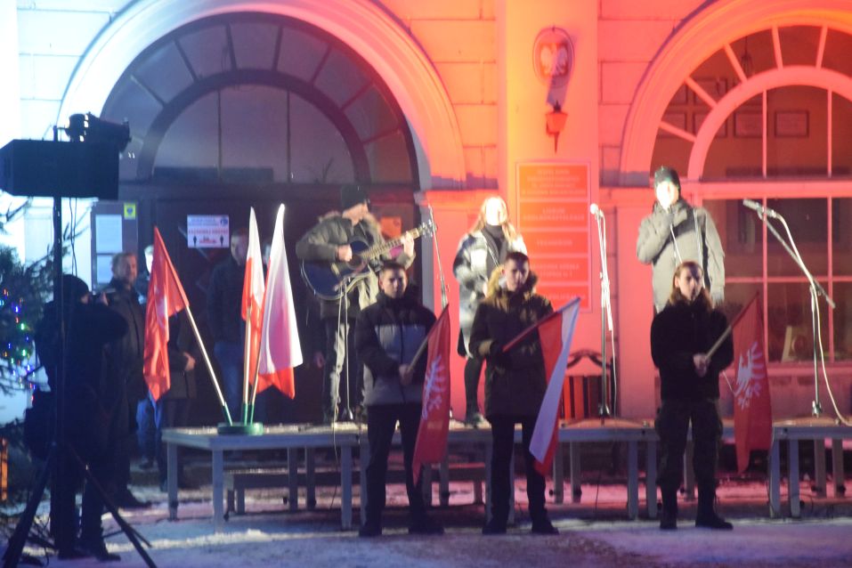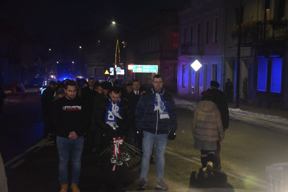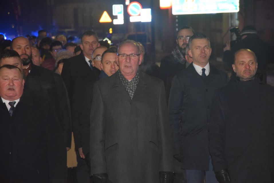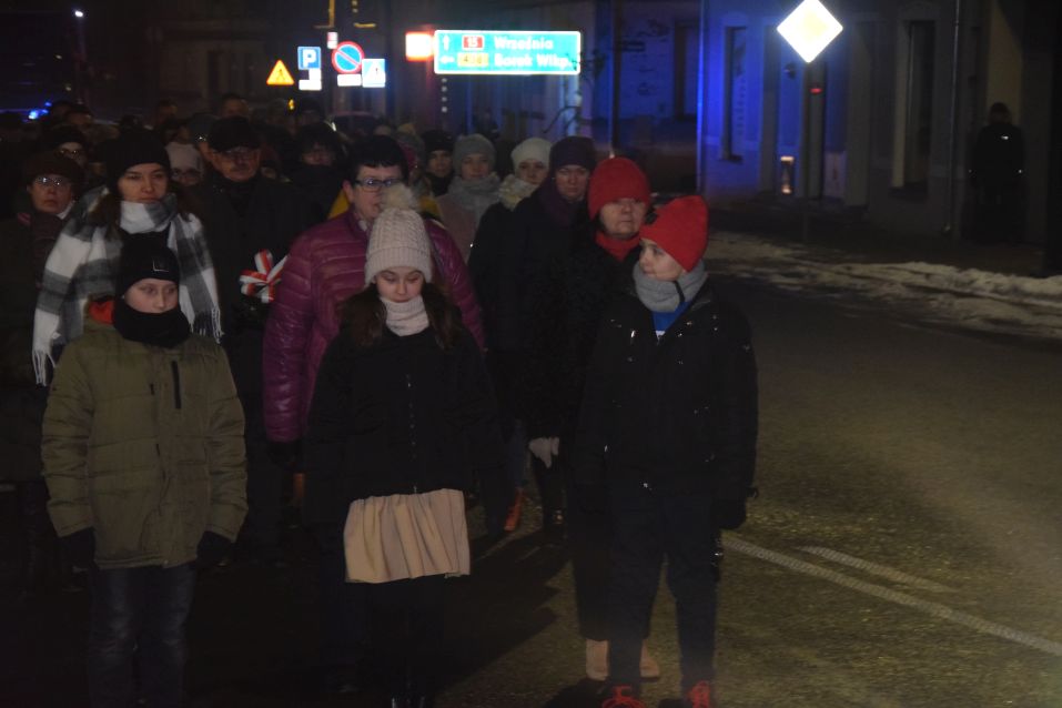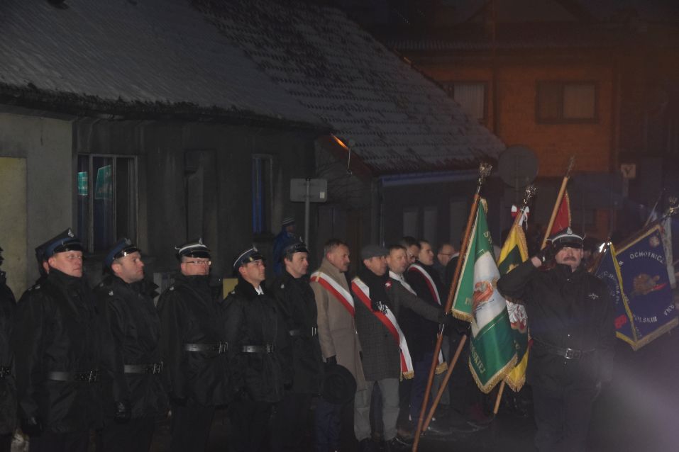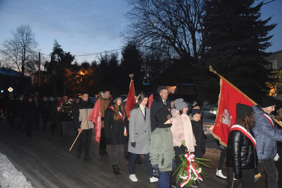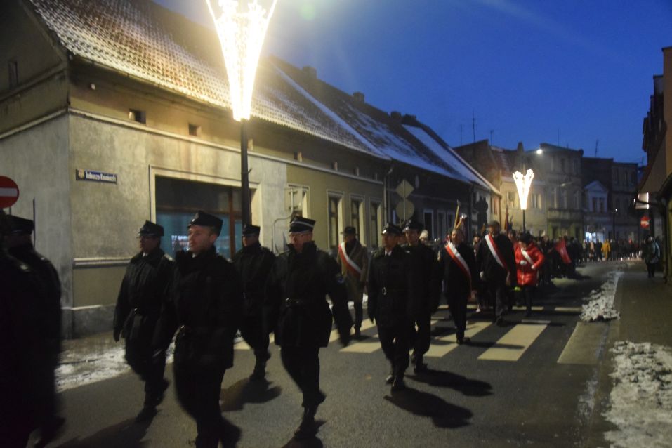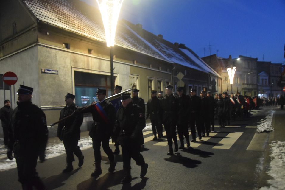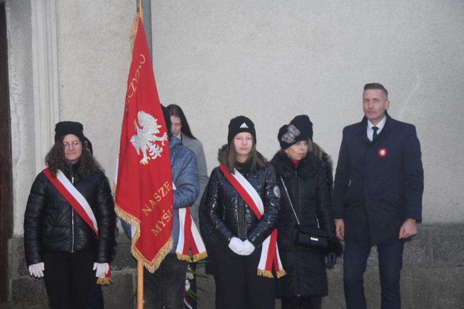 Następnie uczestnicy uroczystości wyruszyli z dziedzińca zamkowego przed pomnik Wolności, by złożyć kwiaty i oddać hołd bohaterom. Koźmińska Orkiestra Dęta zagrała hymn Polski, a następnie wieńce przed pomnikiem złożyli przedstawiciele władz samorządowych, szkół czy stowarzyszeń.