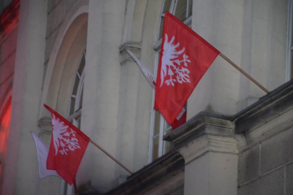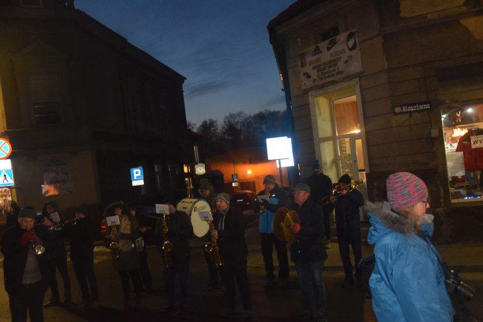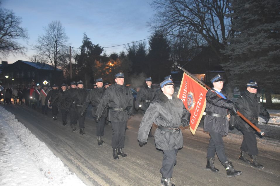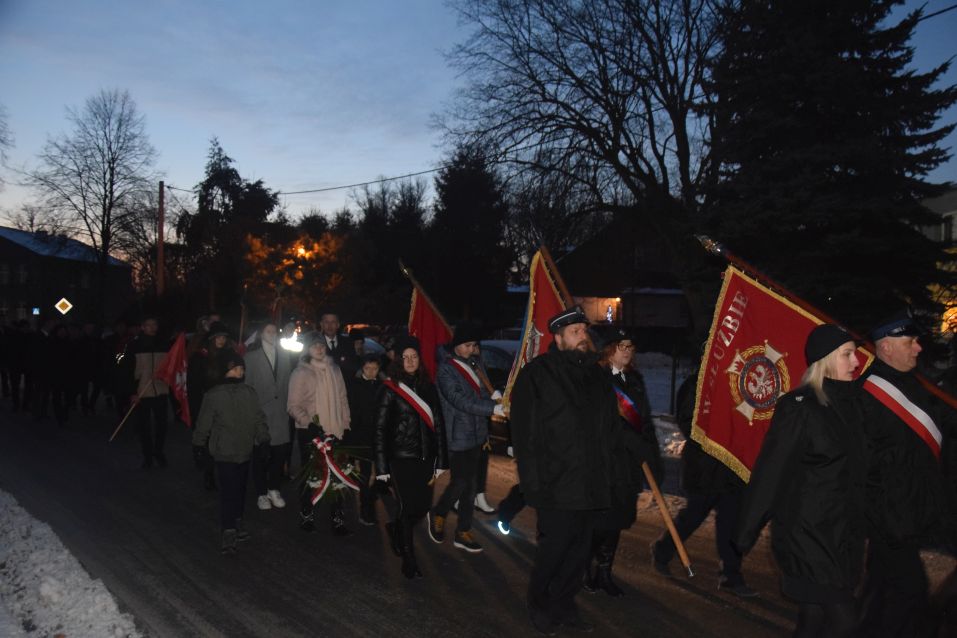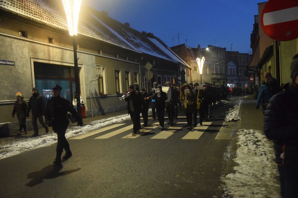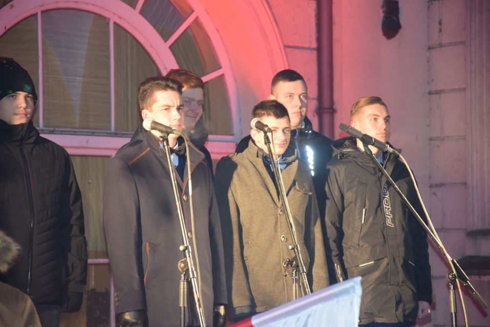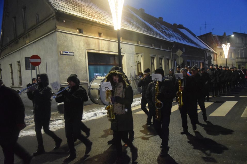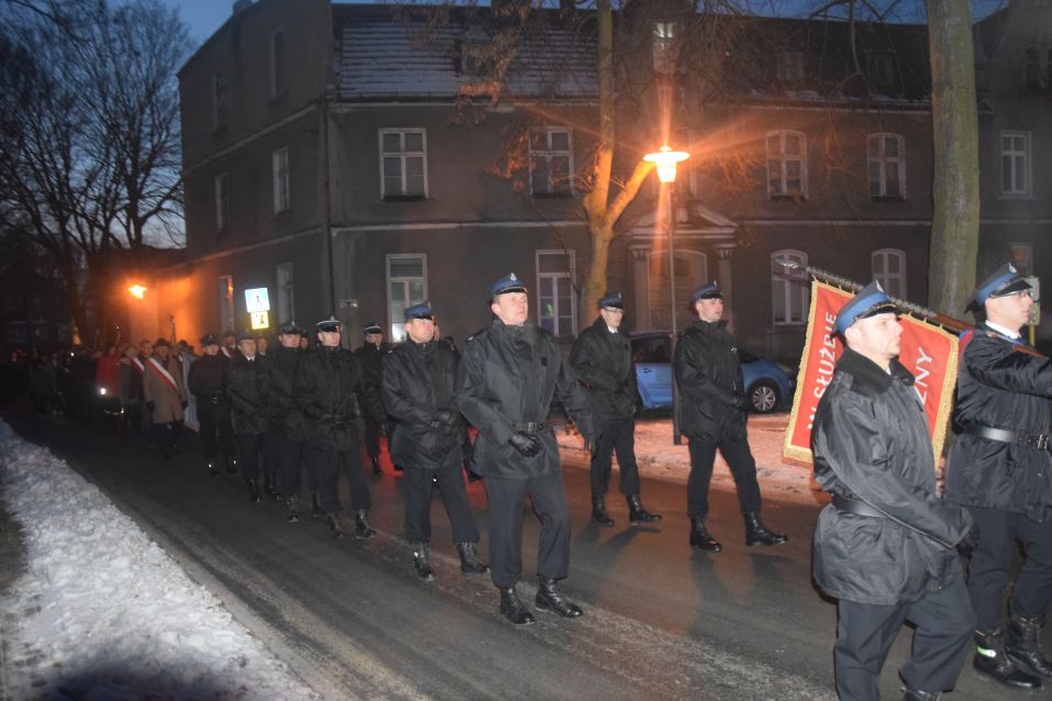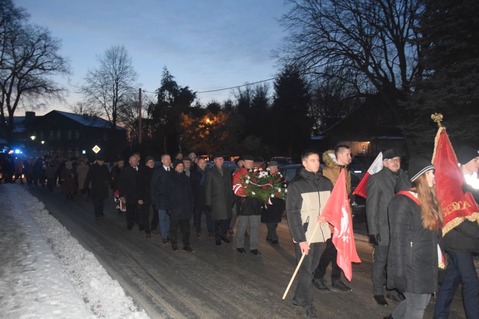 Następnie uczestnicy uroczystości wyruszyli z dziedzińca zamkowego przed pomnik Wolności, by złożyć kwiaty i oddać hołd bohaterom. Koźmińska Orkiestra Dęta zagrała hymn Polski, a następnie wieńce przed pomnikiem złożyli przedstawiciele władz samorządowych, szkół czy stowarzyszeń.
