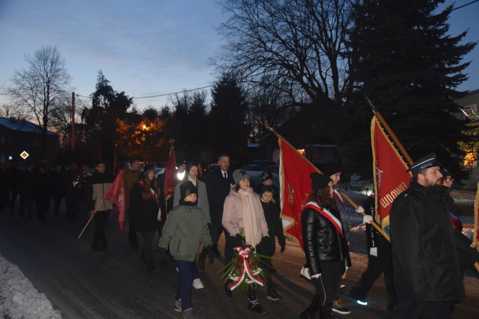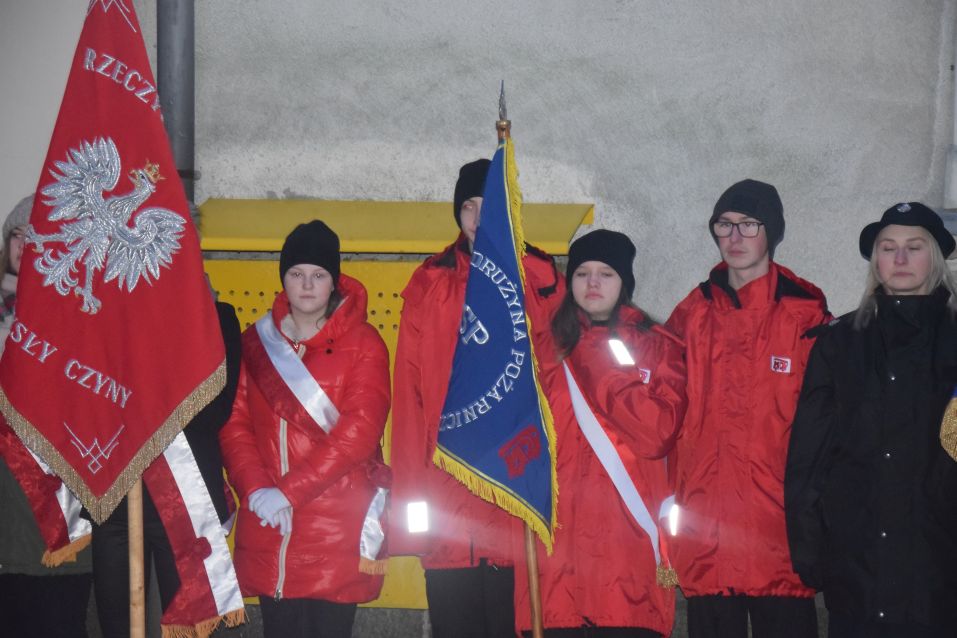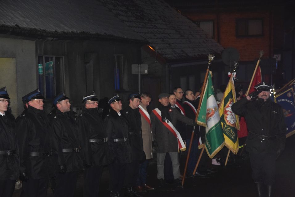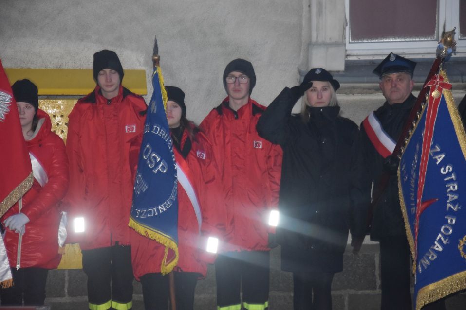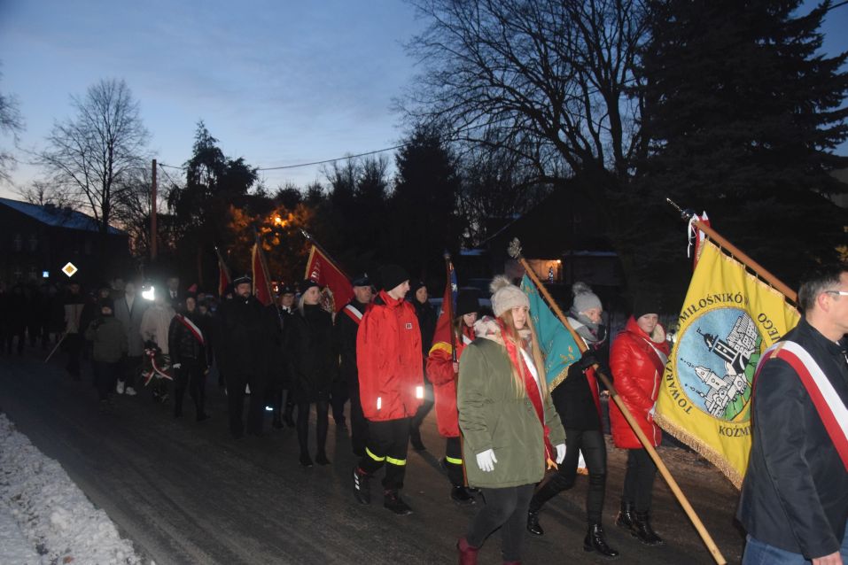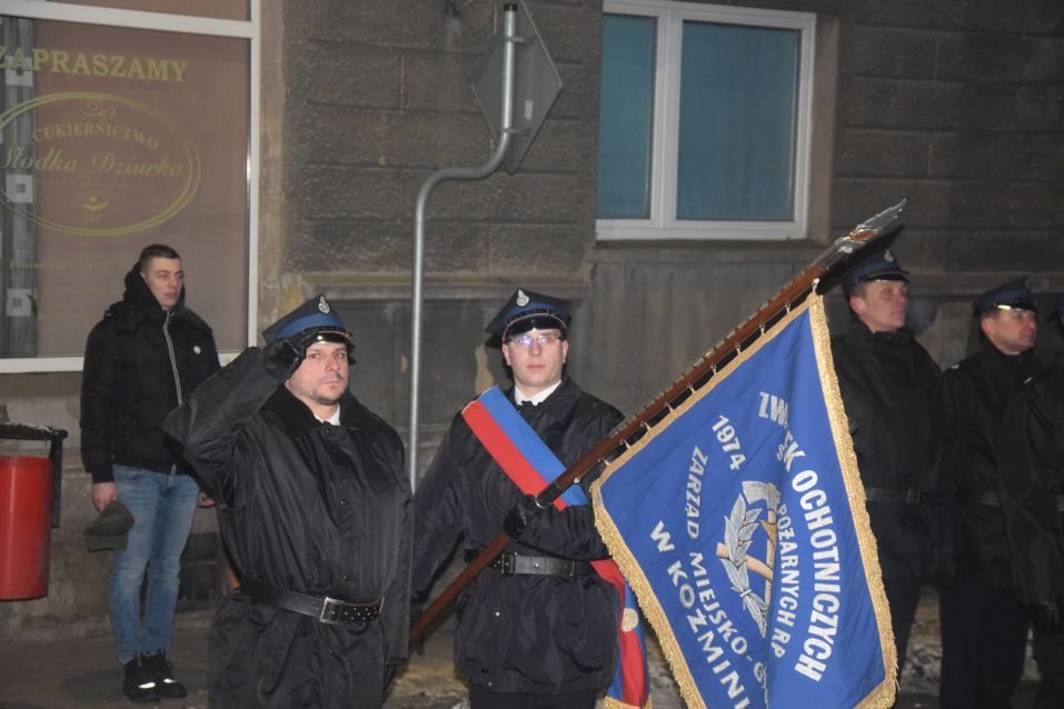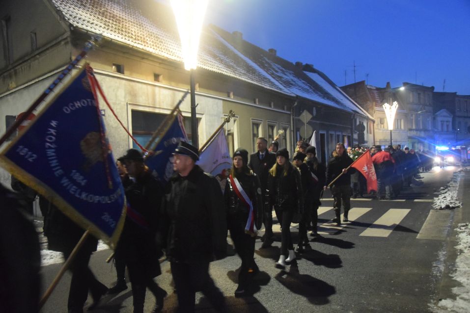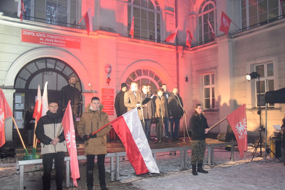 O godz. 16.00 delegacje, poczty sztandarowe i Kompania Reprezentacyjna Ochotniczych Straży Pożarnych Miasta i Gminy Koźmin Wielkopolski zgromadziły się na dziedzińcu zamkowym. Po odśpiewaniu „Marsylianki Wielkopolskiej” dr Piotr Osuch przypomniał historię zrywu powstańczego sprzed 103 lat, a uczeń Zespołu Szkół Ponadpodstawowych im. J. Marcińca odczytał fragment wystąpienia Ignacego Paderewskiego, które stało się impulsem do wybuchu powstania. Utwór „Kocham wolność” Chłopców z Placu Broni wykonali uczniowie ZSP, którzy przygotowali artystyczną oprawę uroczystości. Ściana frontowa zamku rozświetliła się w biało-czerwonych barwach, a wokół zamku rozpalono ogniska.