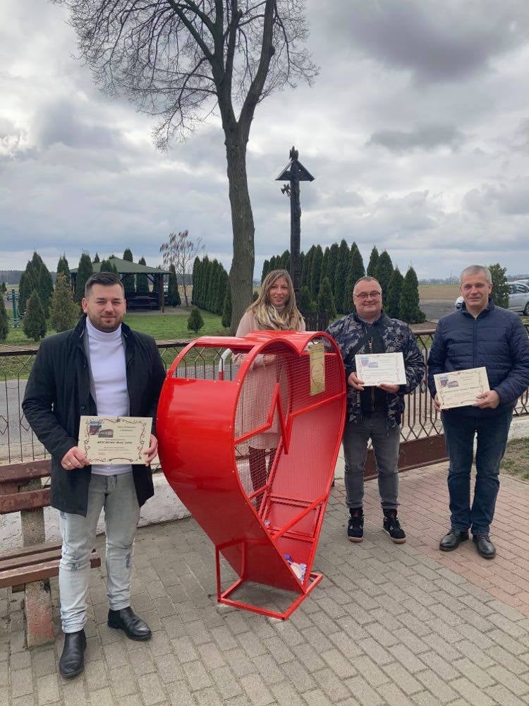 Kolejny czerwony pojemnik na nakrętki pojawił się na terenie gminy Kobylin. Duże metalowe serce zamontowano tym razem przed Szkołą Podstawową w Kuklinowie.