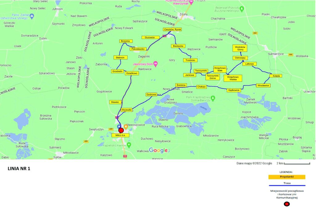 Planowane jest uruchomienie trzech linii autobusowych, a koszt biletu przewidziano na 2-3 zł – linia 1: Milicz – Wziąchowo Wielkie – Cieszków – Milicz, linia 2: Milicz – Krośnice – Sułów – Milicz, linia 3: Milicz – Kużnica Cieszycka – Milicz. We wszystkich połączeniach wyjazd z Milicza będzie o godzinie 8.10, a powrót o 12.30.
