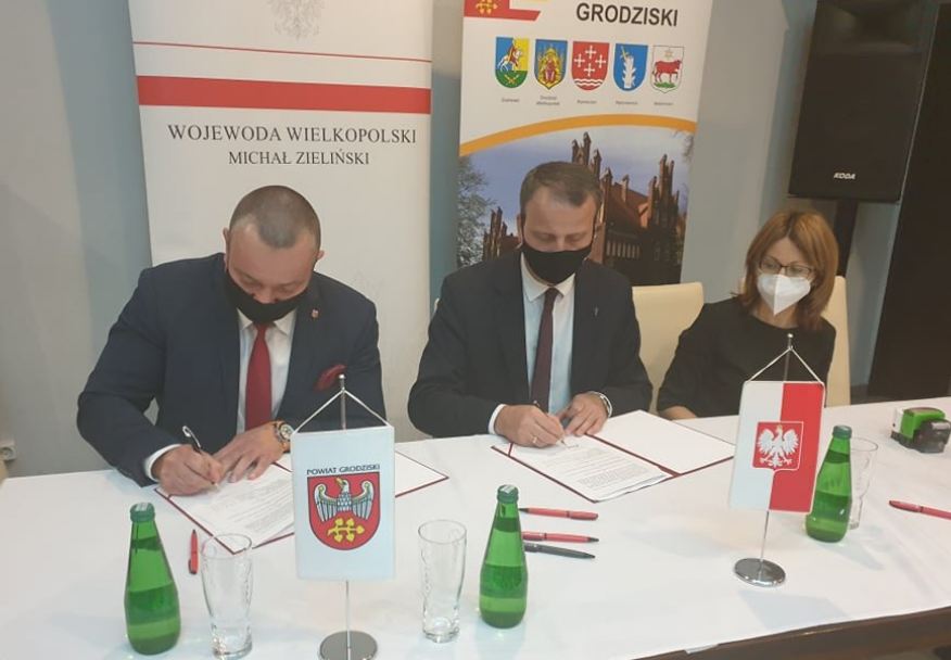 Gmina Kobylin pozyskała ponad 45 tysięcy złotych na budowę wyniesionego przejścia dla pieszych na ul. Sportowej. 20 października w Grodzisku Wlkp. burmistrz Tomasz Lesiński i skarbnik Barbara Sławińska podpisali umowę w tej sprawie z wojewodą Michałem Zielińskim.