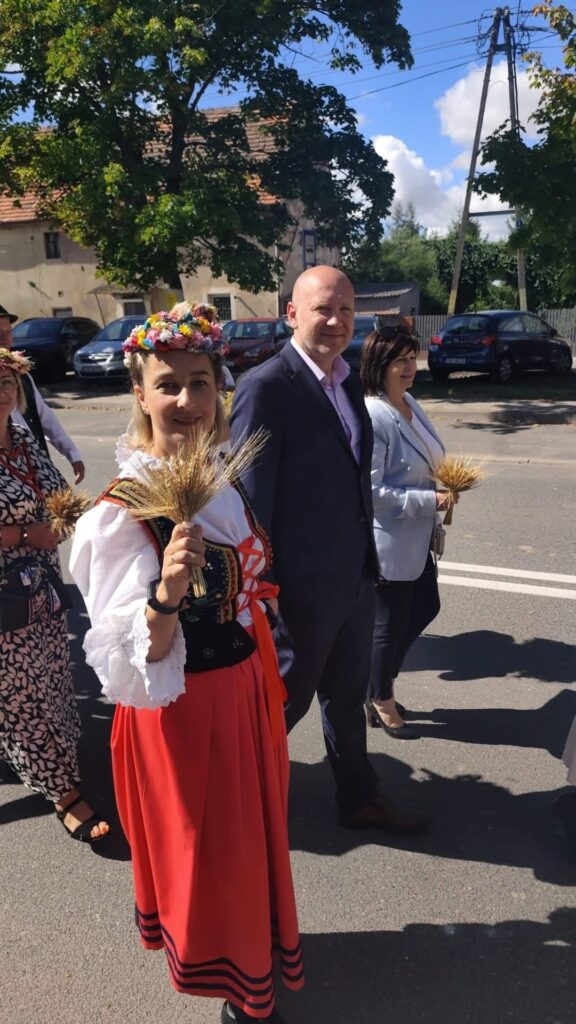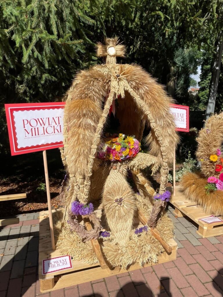 Reprezentacja Powiatu Milickiego, w składzie przedstawiciele sołectwa Bukowice z gminy Krośnice wraz ze wspaniałym wieńcem dożynkowym oraz władze powiatu: starosta Łukasz Rokita i wicestarosta Małgorzata Walniczek, uczestniczyła w Dożynkach Wojewódzkich 2025 połączonych z X Festiwalem Kultury Wsi Polskiej w Wądrożu Wielkim.
