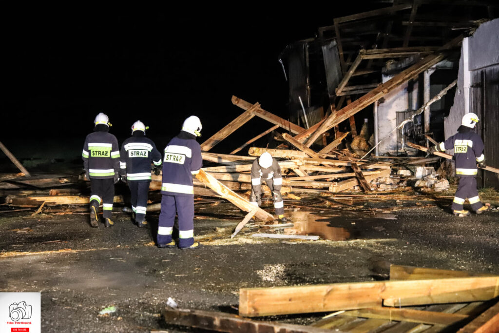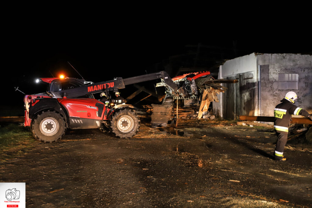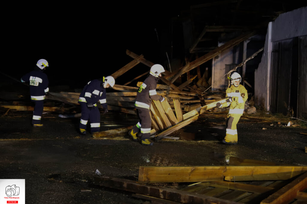 Działania ratowników wsparł właściciel obiektu, udostępniając ładowarkę mechaniczną, którą usuwano większe elementy. Sprawdzono także, czy w budynku nie przebywały jakieś osoby. Akcja strażaków trwała godzinę i 45 minut.