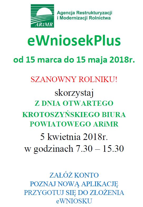 Od 2018 roku wszystkie wnioski o przyznanie płatności bezpośrednich oraz płatności obszarowych PROW składa się obowiązkowo w formie elektronicznej za pośrednictwem aplikacji eWniosekPlus, dostępnej poprzez stronę internetową Agencji Restrukturyzacji i Modernizacji Rolnictwa: www.arimr.gov.pl