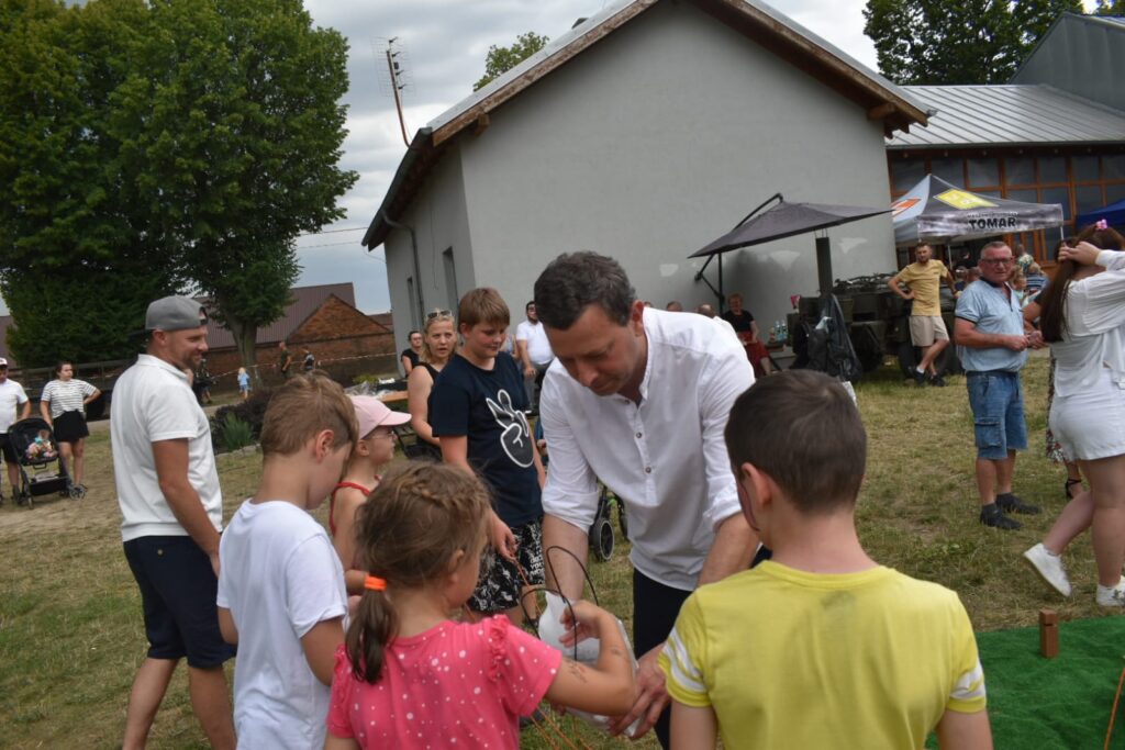 Uroczystość rozpoczął energetyczny występ Zespołu Ludowego „Tereski”, który wprowadził wszystkich w radosny nastrój. Program imprezy obfitował w liczne atrakcje, które przyciągnęły zarówno młodszych, jak i starszych mieszkańców. Dmuchany zamek przyciągał dzieci, spacer z uroczymi alpakami był niezapomnianą przygodą, a animacje dla dzieci dostarczyły mnóstwo frajdy. Miłośnicy motoryzacji mogli podziwiać zlot aut amerykańskich. Burmistrz Zdun, Miłosz Zwierzyk, również wziął udział w festynie, aktywnie uczestnicząc w grach i zabawach zręcznościowych, integrując się z mieszkańcami. Dla najmłodszych ogromną niespodzianką były odwiedziny olbrzymiego białego misia, który natychmiast zyskał sympatię dzieci, zachęcając je do wspólnej zabawy.