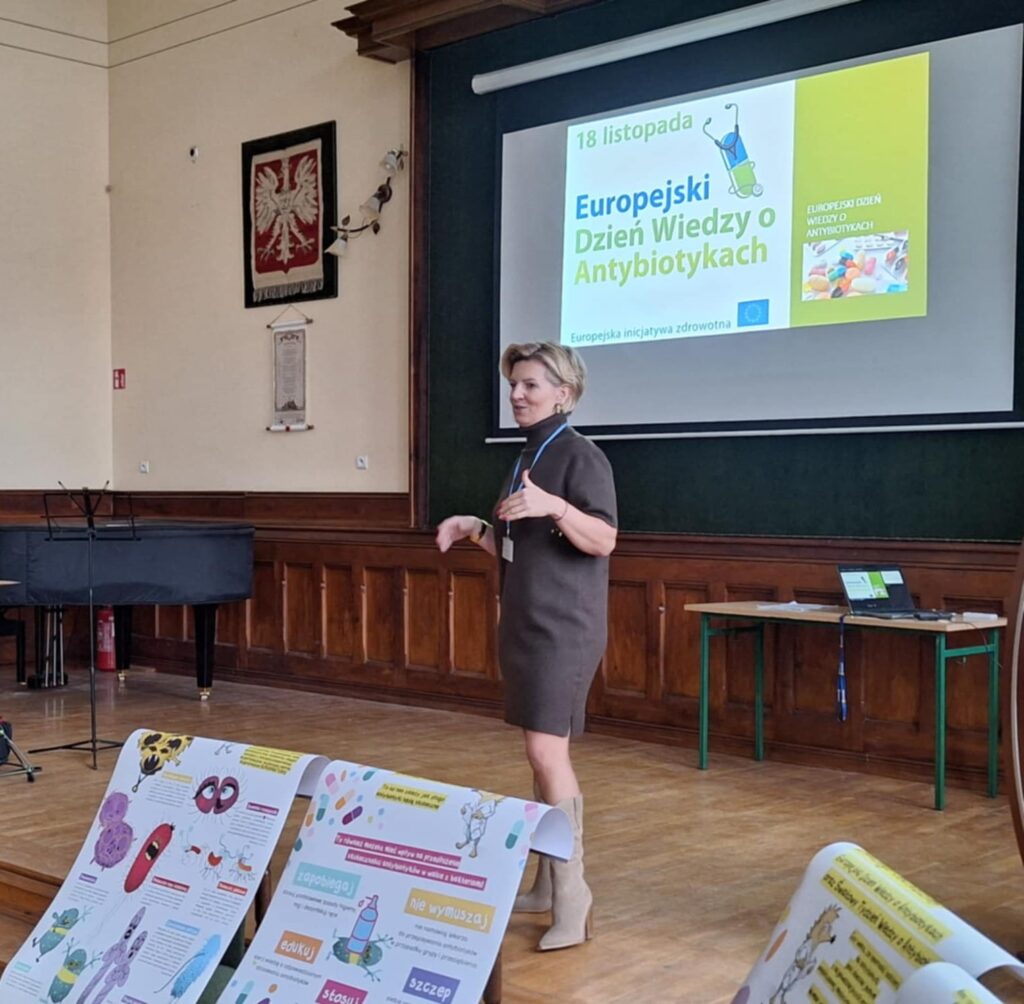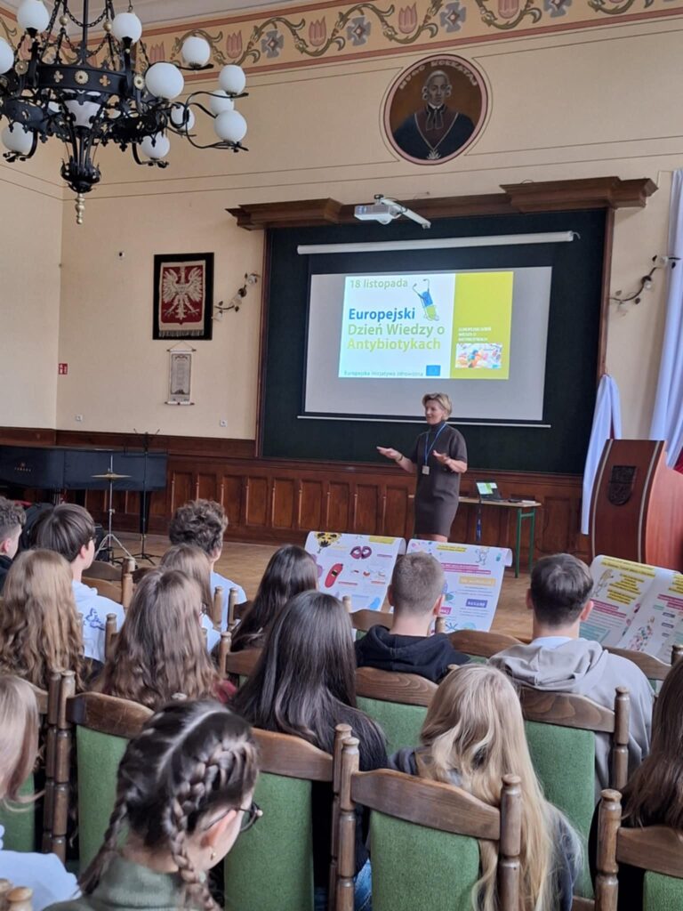 18 listopada, z okazji Europejskiego Dnia Wiedzy o Antybiotykach (EAAD), uczniowie profilu biologiczno-chemicznego z I Liceum Ogólnokształcącego w Krotoszynie mieli okazję uczestniczyć w niezwykle interesującej prelekcji przygotowanej przez Powiatową Stację Sanitarno Epidemiologiczną w Krotoszynie poświęconą historii i znaczeniu antybiotyków.