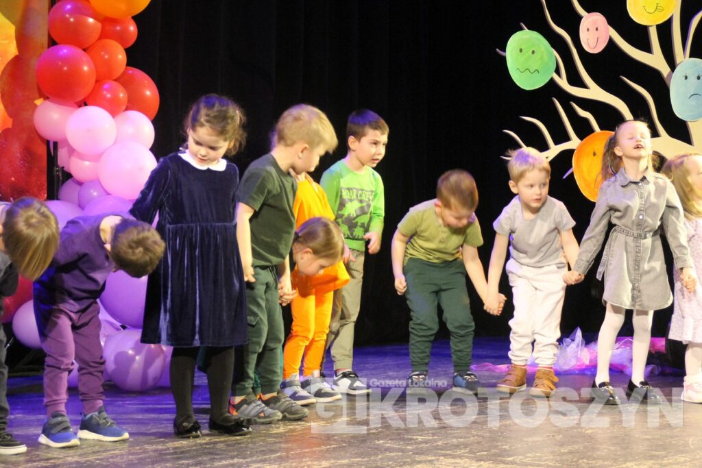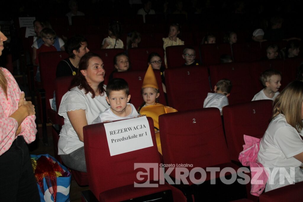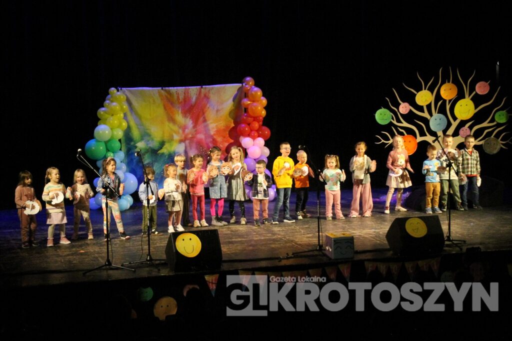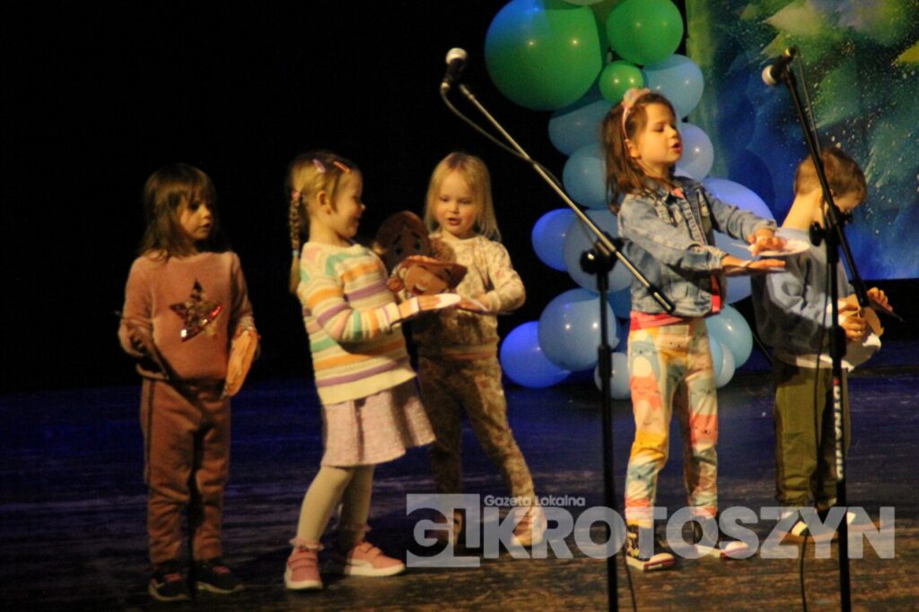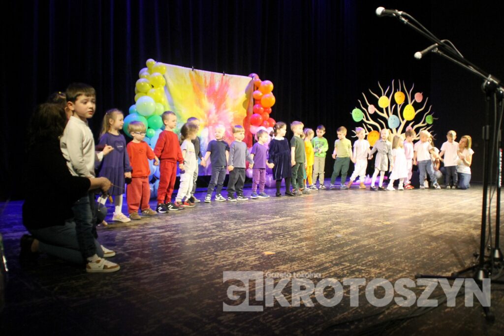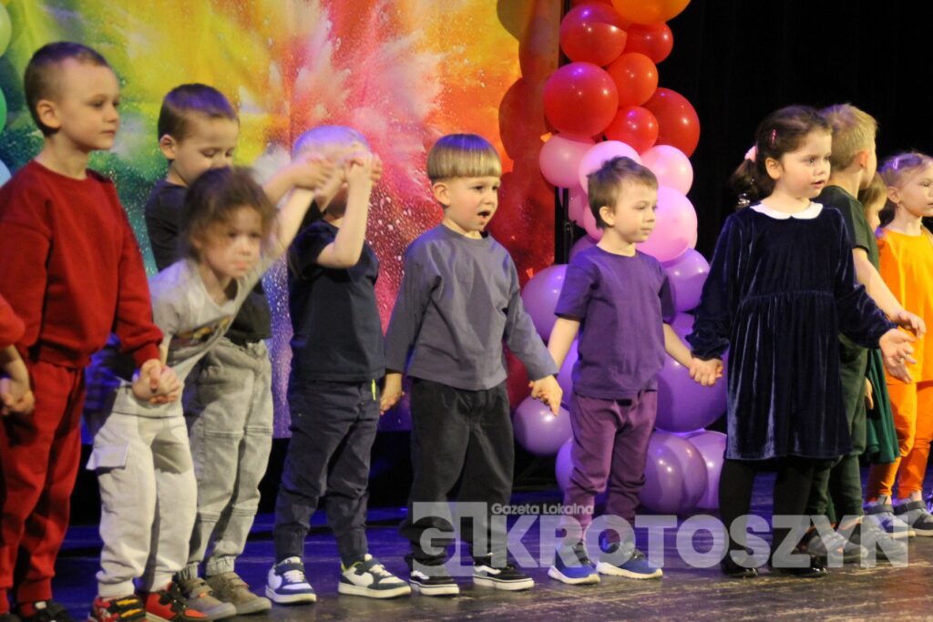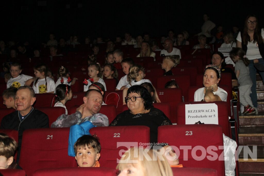 Na scenie kina 3D „Przedwiośnie” Krotoszyńskiego Ośrodka Kultury zaprezentowały się grupy przedszkolne z każdej z siedmiu placówek, a każdy występ spotykał się z entuzjastycznym przyjęciem publiczności i gromkimi brawami. Mali artyści występowali z dużym zaangażowaniem i radością, pokazując, że scena nie jest im obca.