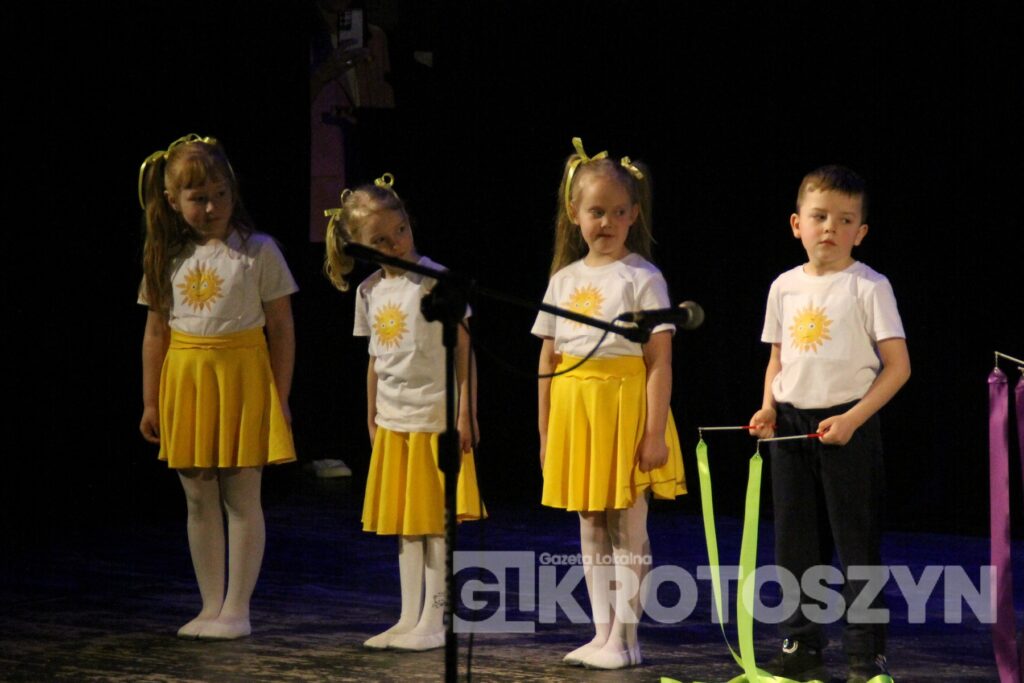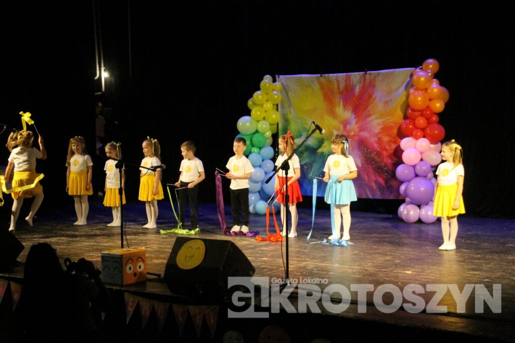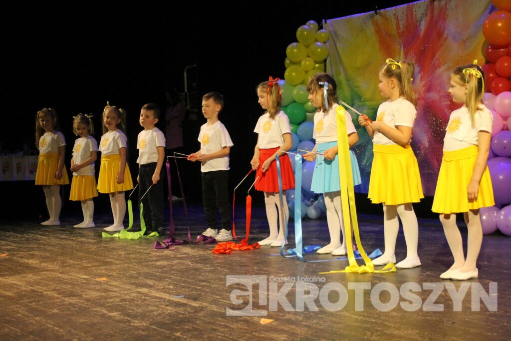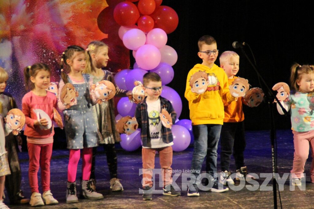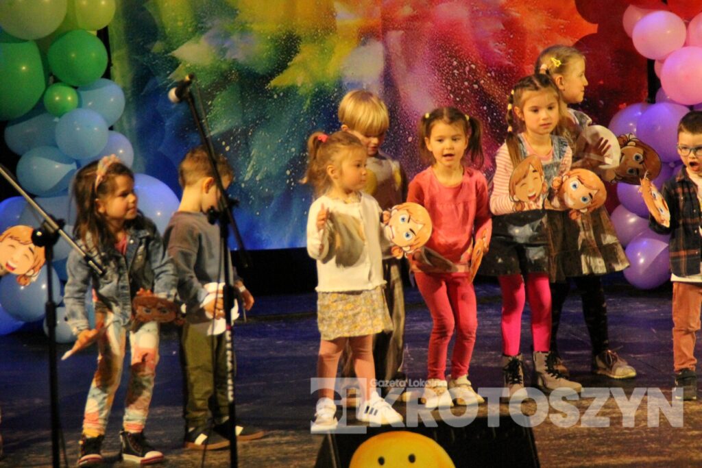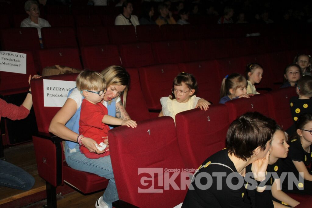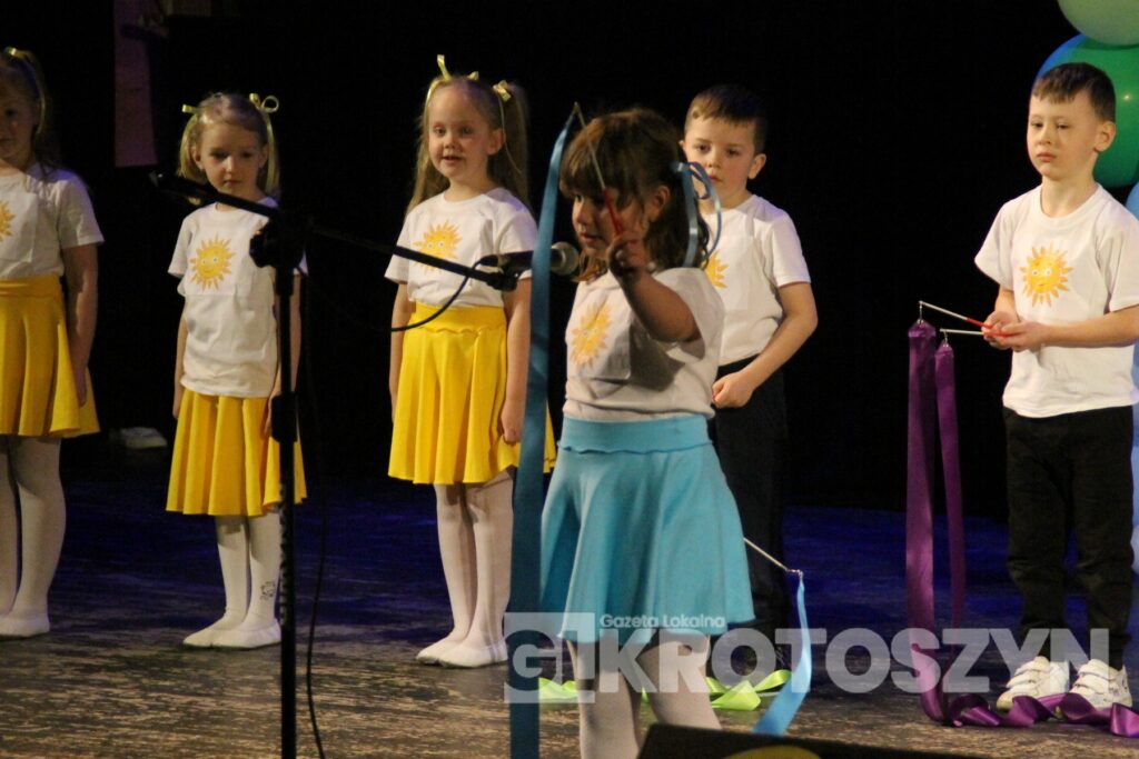Na scenie kina 3D „Przedwiośnie” Krotoszyńskiego Ośrodka Kultury zaprezentowały się grupy przedszkolne z każdej z siedmiu placówek, a każdy występ spotykał się z entuzjastycznym przyjęciem publiczności i gromkimi brawami. Mali artyści występowali z dużym zaangażowaniem i radością, pokazując, że scena nie jest im obca.