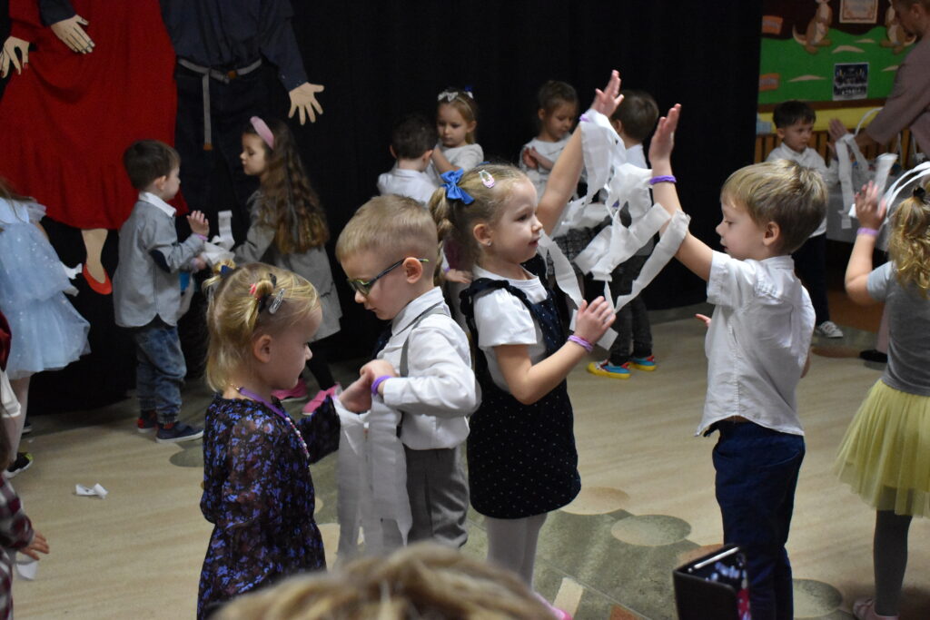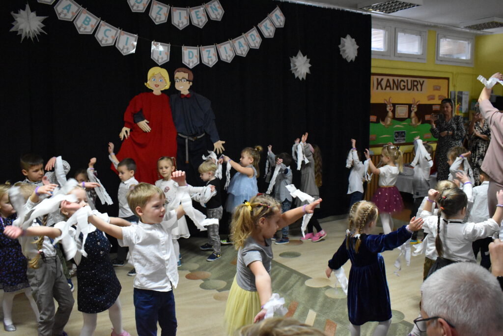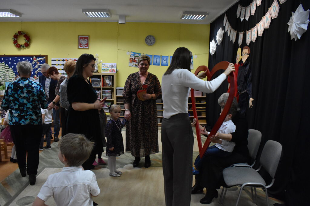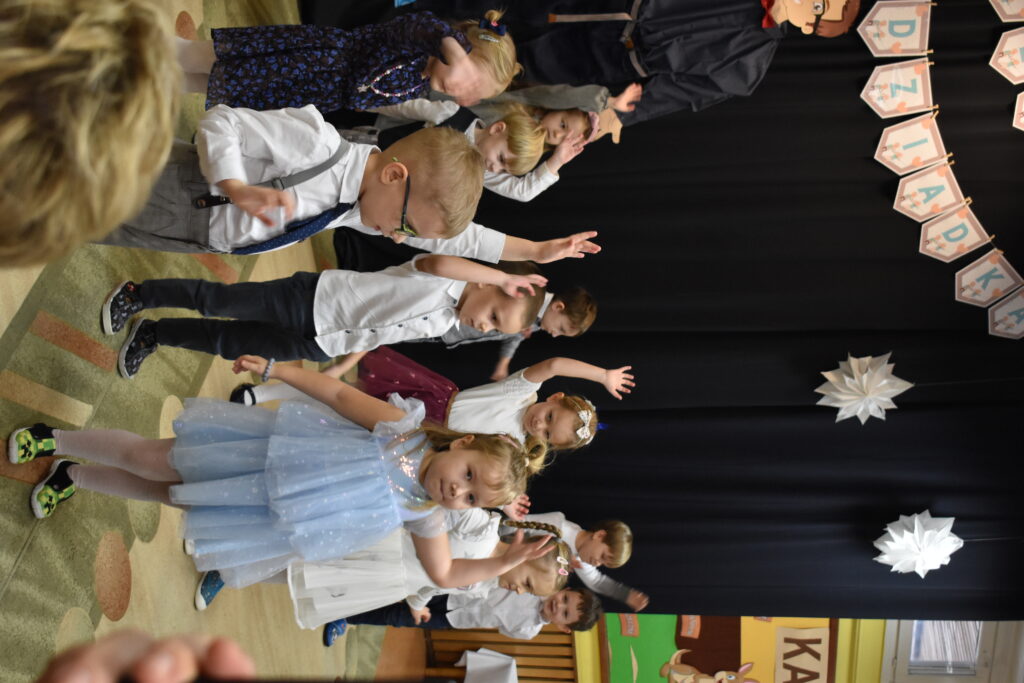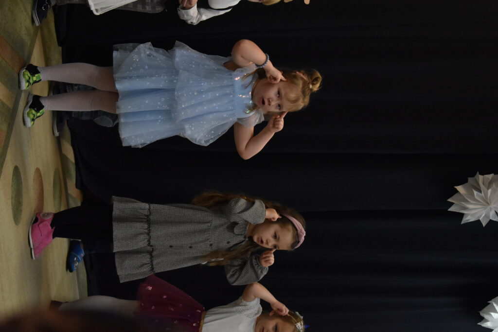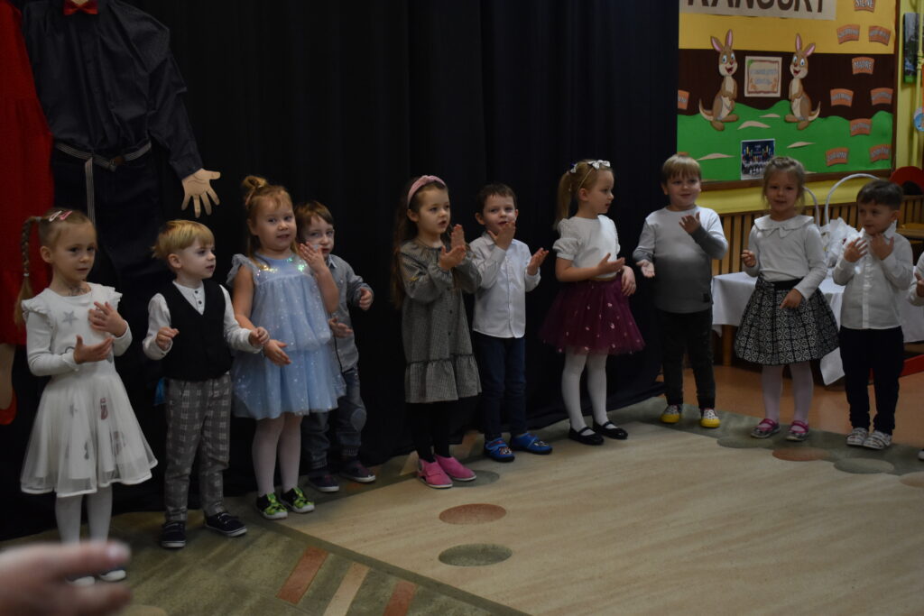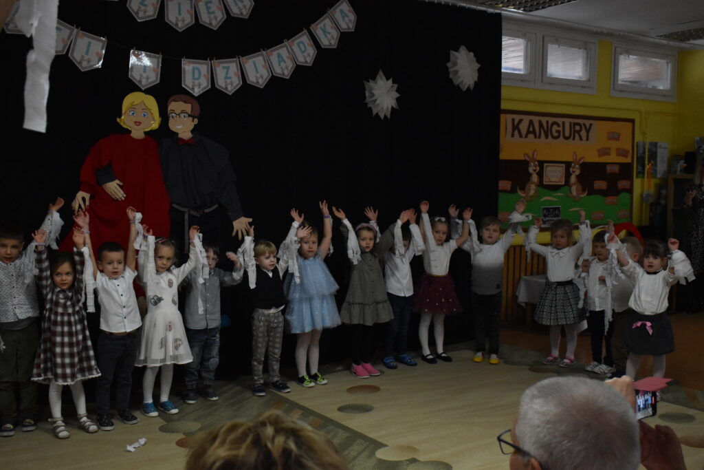 Przedszkolaki zaprezentowały się w tańcach i recytacji wierszyków, dedykowanych dla babć i dziadków. Punktem kulminacyjnym był tzw. taniec bałwanków. Po występie przyszedł czas na poczęstunek oraz podarunki dla seniorów. Było wiele radości i wzruszających chwil.