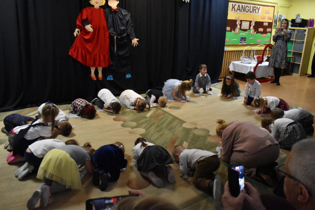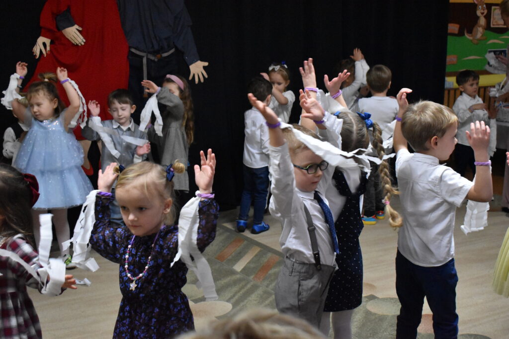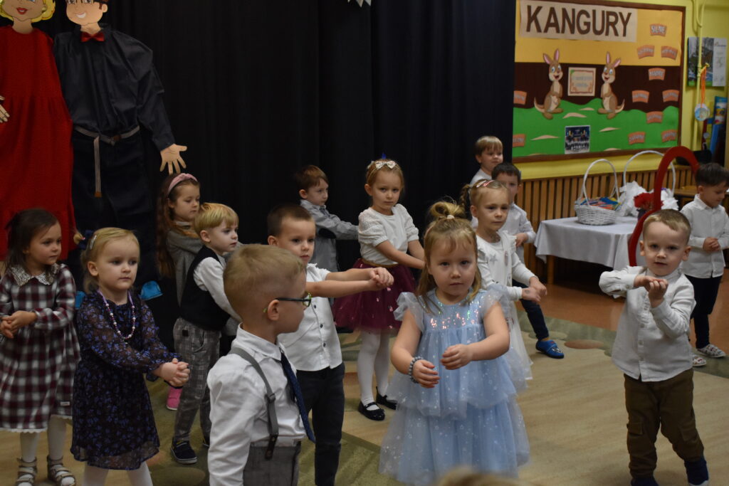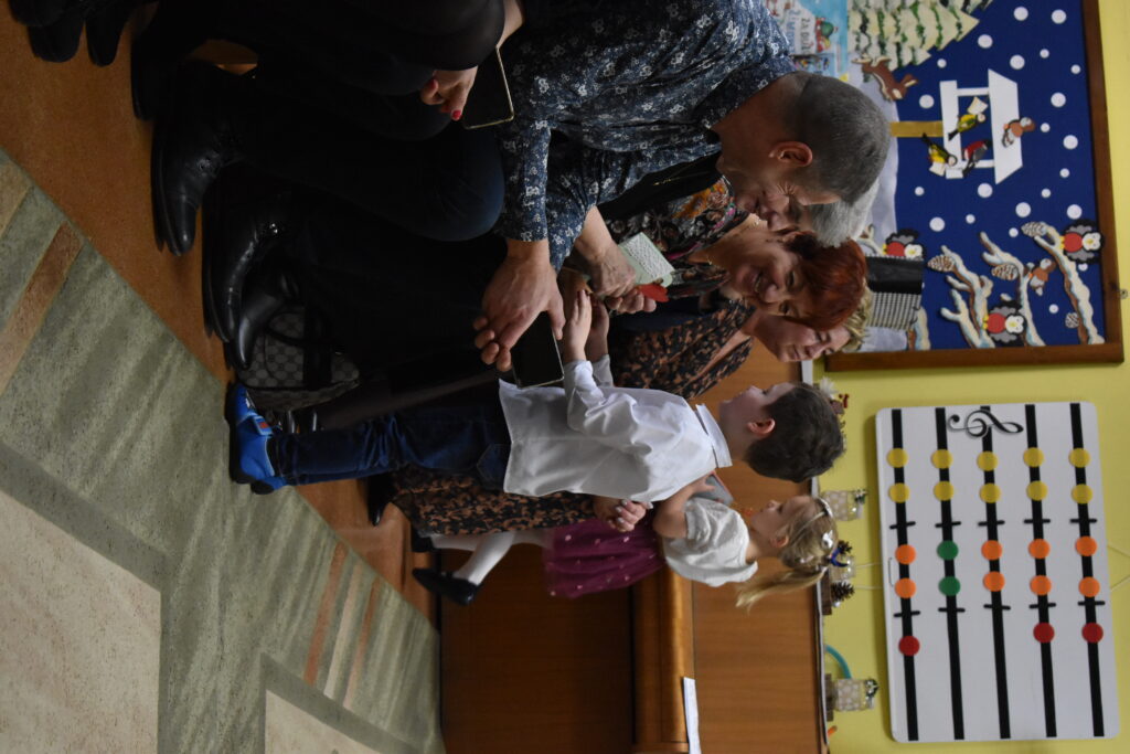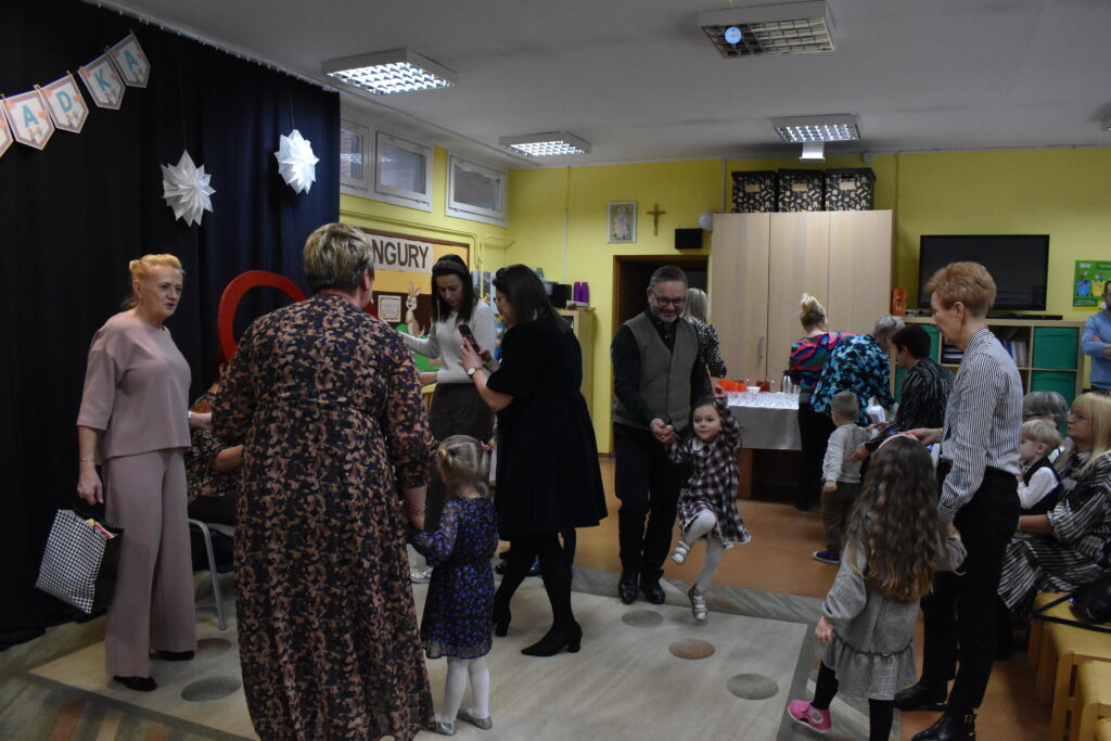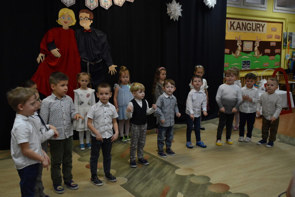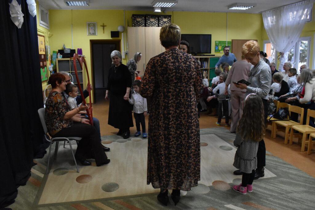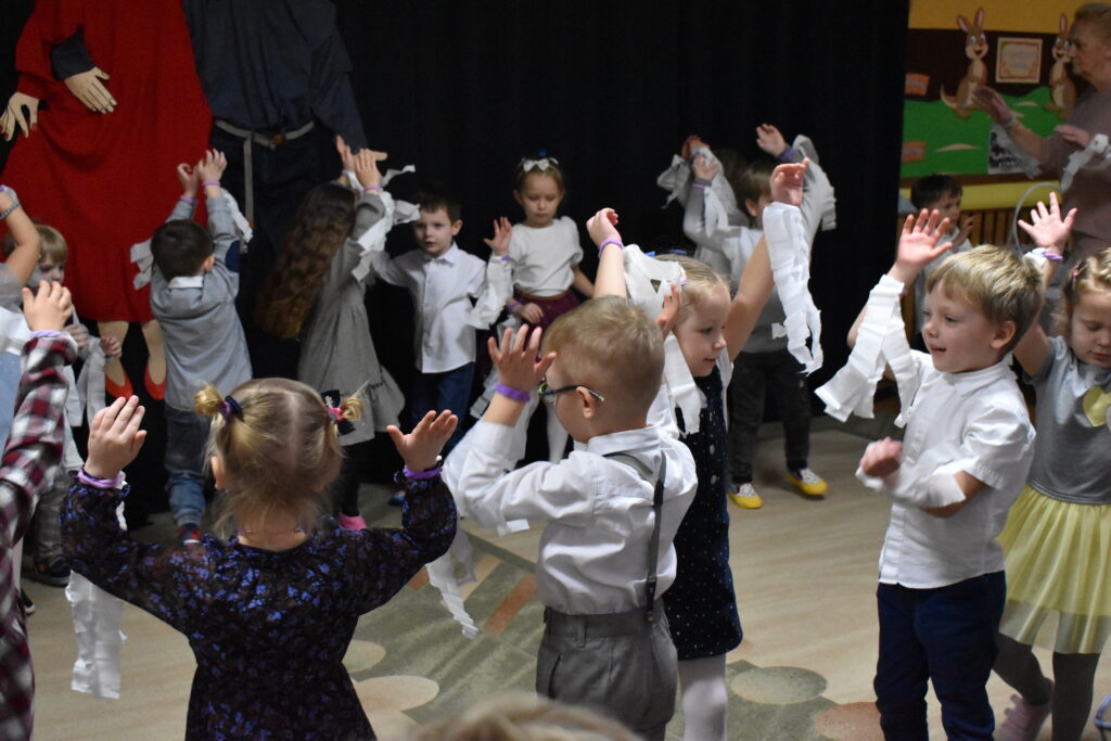 Przedszkolaki zaprezentowały się w tańcach i recytacji wierszyków, dedykowanych dla babć i dziadków. Punktem kulminacyjnym był tzw. taniec bałwanków. Po występie przyszedł czas na poczęstunek oraz podarunki dla seniorów. Było wiele radości i wzruszających chwil.