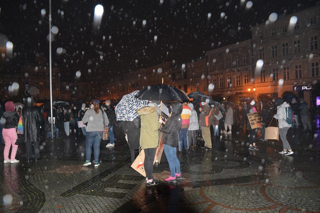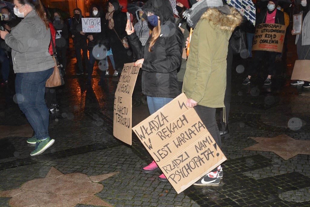 W całym kraju trwają protesty przeciwko decyzji TK. Pierwsza manifestacja w naszym mieście odbyła się 23 października, jednak nie zgromadziła wielu osób i ograniczyła się do pozostawienia przy biurze poselskim Prawa i Sprawiedliwości kilku zniczy. Znacznie większy protest odbył się dwa dni później. Kilkaset osób zebrało się w tym samym miejscu. Protestujący przyczepiali do okien biura PiS wieszaki od ubrań i kartki z różnymi napisami. Przybyli mieszkańcy – wielu z nich miało transparenty – głośno manifestowali swoje oburzenie.