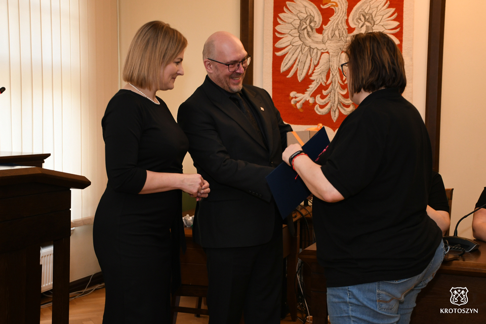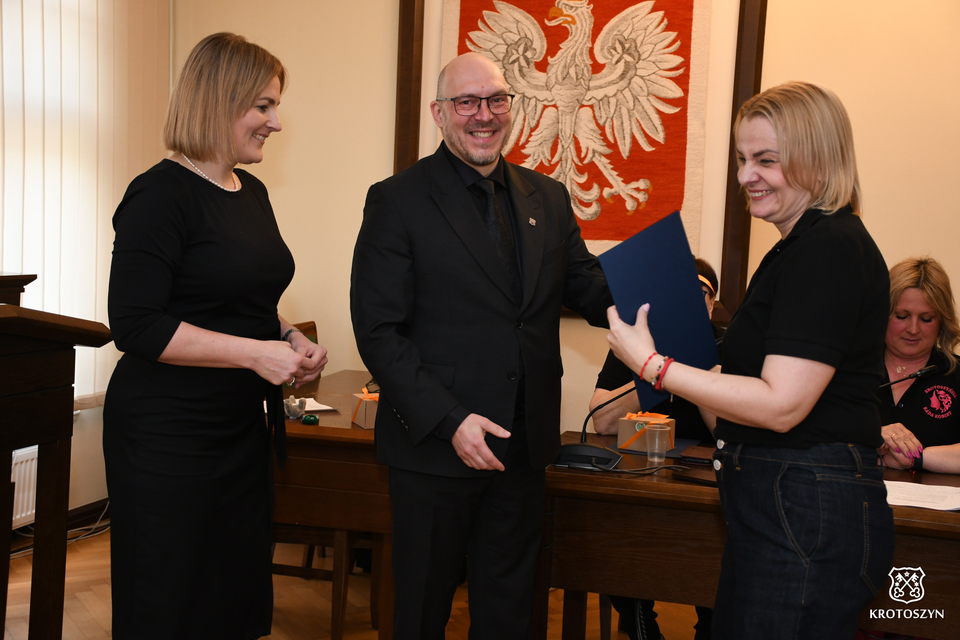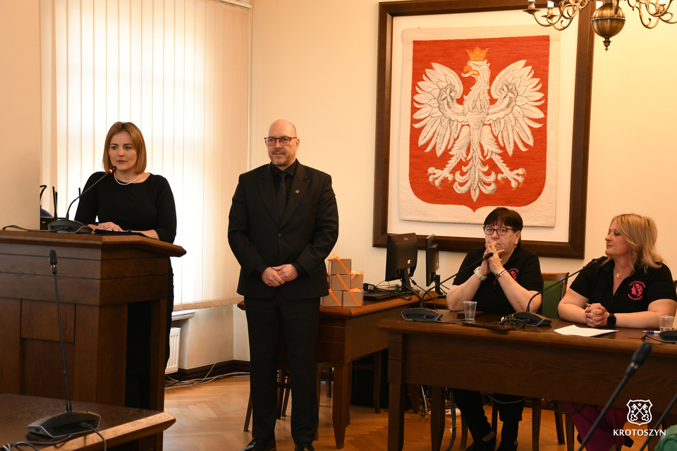 Podczas sesji za działania podziękowali m.in. burmistrz Krotoszyna Natalia Robakowska i przewodniczący Rady Miejskiej w Krotoszynie Krzysztof Manista.