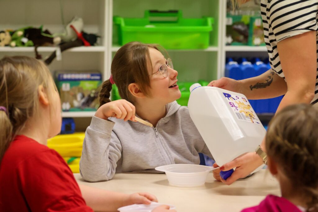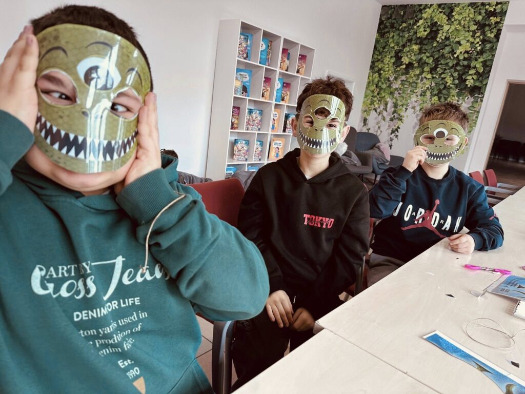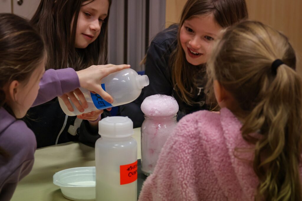 Jednym z punktów ferii były także zajęcia przyrodnicze. W ich trakcie grupa odwiedziła „Ptasią Planetę”, gdzie – wraz z ornitolożką Zuzą Pestką z Natury – poznawała ciekawostki o ptakach i sposoby mądrego wspierania skrzydlatych mieszkańców. W ramach działań praktycznych przygotowano m.in. kulki z ziarnami.