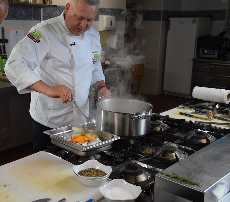 – To mogłaby być długa historia, ponieważ – po pierwsze – mam swoje lata, a po drugie – wiele się działo. Jestem kucharzem trochę przekornym, co pokazują moje losy. Gdy kończyłem szkołę gastronomiczną w latach 80., były to czasy dosyć ciężkie. Nie w głowie mi było wówczas to, żeby wiązać moje życie z gastronomią, ponieważ to, co widziałem np. podczas praktyk szkolnych, bardzo mnie zniechęciło. Później w trakcie studiów, a studiowałem filozofię, konkretnie etykę, wyjeżdżałem za granicę. Żeby mieć na podróże, dorabiałem sobie właśnie w gastronomii. W Szwajcarii trafiłem do restauracji na poziomie Michelin i powiedziałem sobie, że jak kiedyś w Polsce właśnie tak będzie wyglądała gastronomia, to wtedy będę chciał się tym zajmować. Tak się złożyło, że gdy skończyłem studia, na nowo otwierał się Hotel Bristol w Warszawie. Dzięki moim wakacyjnym doświadczeniom, głównie tej szwajcarskiej przygodzie, dostałem się do tego zespołu. To rozpoczęło moją karierę – pięciogwiazdkowe hotele, wszystkie stopnie kariery – od młodszego commis, czyli od najniższego stanowiska pomocnika kucharza, aż po pozycję szefa kuchni. Przyszedł taki moment, kiedy chciałem znowu wyjechać z Polski, żeby nabrać doświadczenia międzynarodowego i spojrzeć trochę z dystansu na to, co się u nas dzieje. Wtedy wyjechałem do Chin, tam pracowałem dwa lata. Wróciłem i stwierdziłem, że teraz chcę już gotować tylko po polsku. Zatęskniłem za polskimi produktami, smakiem. To mnie ugruntowało w kierunku, w jakim powinienem dalej zmierzać i nauczyło mnie wielkiego szacunku do lokalnego produktu. Mam taką filozofię, że w miejscu, w którym przychodzi mi gotować, staram się – na tyle, na ile to możliwe – korzystać z produktów, które są tam dostępne i są zgodne z sezonem. I tak sobie działam już od długiego czasu, będzie to już ponad 25 lat pracy w kuchni. Teraz rozpoczynam pracę jako dyrektor kulinarny w Hotelu Arłamów.