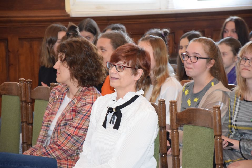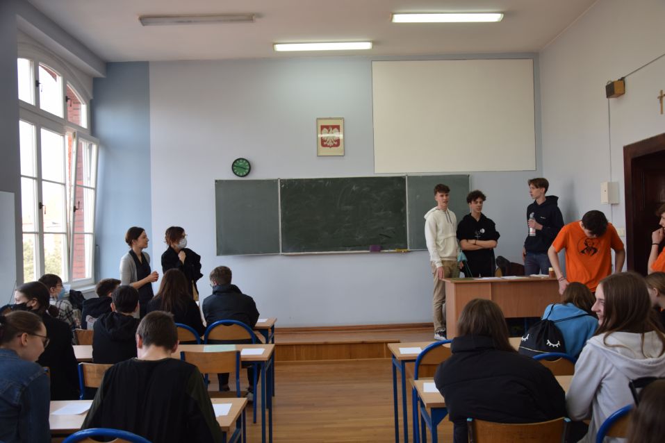 Po części oficjalnej goście ze szkół podstawowych zwiedzali klasy i pracownie LO, gdzie czekali na nich nauczyciele, którzy szerzej opowiedzieli o swoich przedmiotach.