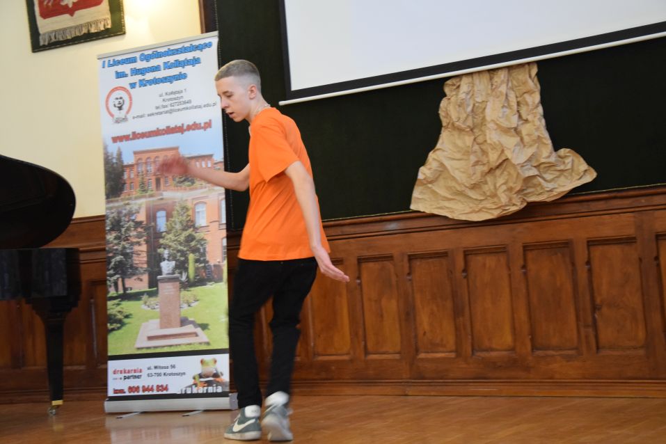 W części artystycznej uczniowie Kołłątaja zaprezentowali swoje talenty wokalne, muzyczne i taneczne. Po nich na scenie pojawił Wojtek Raś (absolwent i obecnie student Politechniki Poznańskiej), który ocenił krotoszyńskie liceum jako miejsce idealne do rozwijania swoich talentów i pasji. Jako przykład podał realizację projektu stworzenia telewizji „Hugon TV”, która na bieżąco relacjonuje życie społeczności szkolnej. Podczas wystąpienia dla ósmoklasistów puścił spot, w którym inni absolwenci, a obecnie studenci uczelni wyższych również wysoko oceniają LO w Krotoszynie.