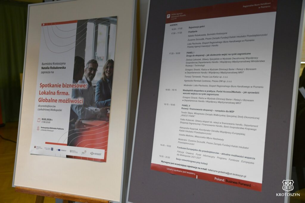W Krotoszyńskiej Bibliotece Publicznej odbyło się spotkanie „Lokalna firma. Globalne możliwości”, podczas którego przedsiębiorcy poznali narzędzia i wsparcie umożliwiające rozwój na rynkach zagranicznych. Eksperci i praktycy biznesu podpowiadali, jak skutecznie zdobywać fundusze, ograniczać ryzyko i budować międzynarodową ekspansję.