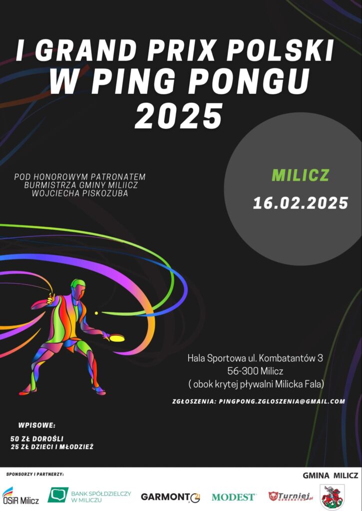 Milicz po raz kolejny będzie gospodarzem prestiżowego I Grand Prix Polski w Ping Pongu. Rok 2025, podobnie jak 2024, zapowiada się przełomowo dla miłośników tego sportu. W ramach cyklu Grand Prix Polski oraz Mistrzostw Polski, które odbędą się w listopadzie, zaplanowano wiele emocjonujących turniejów.