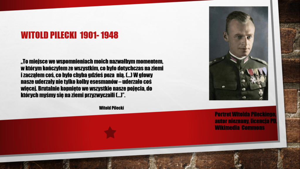 Uczestnicy mieli do wykonania biogram z informacjami o życiu i dokonaniach Witolda Pileckiego – w programie Power Point w formie prezentacji multimedialnej.