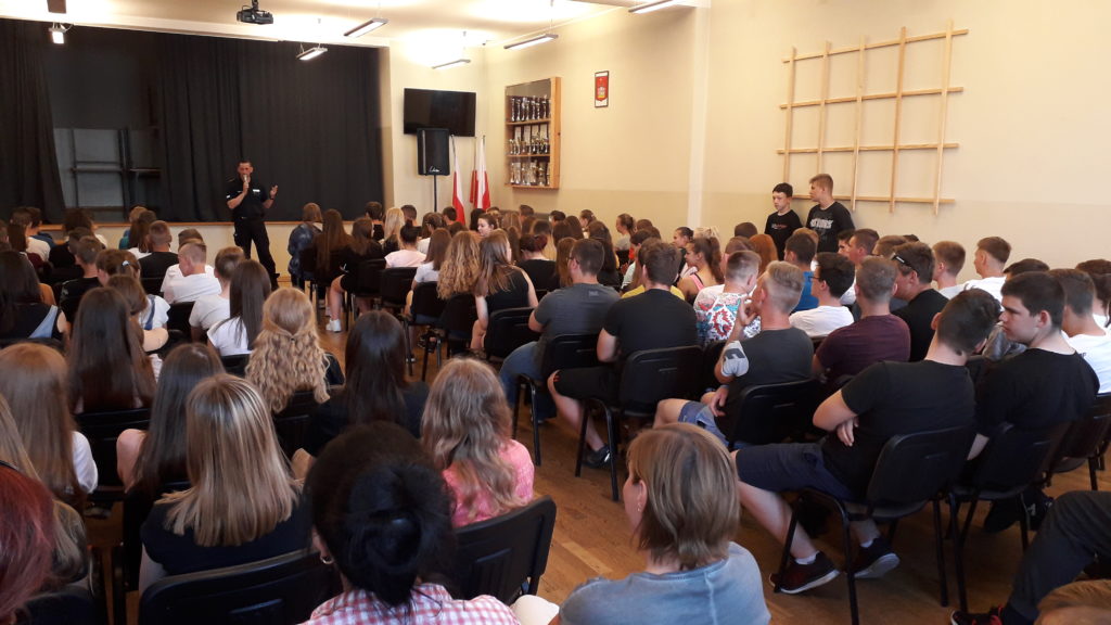 Celem spotkania było omówienie zagrożeń, z którymi mogą zetknąć się młodzi ludzie w okresie wakacji. Młodzież obejrzała spot „Szkoda Ciebie na takie patoklimaty”. Rozmawiano o wpływie substancji psychoaktywnych oraz o konsekwencjach prawnych z tym związanych. Mówiono o paleniu papierosów i e-papierosów czy spożywaniu alkoholu przez osoby niepełnoletnie.