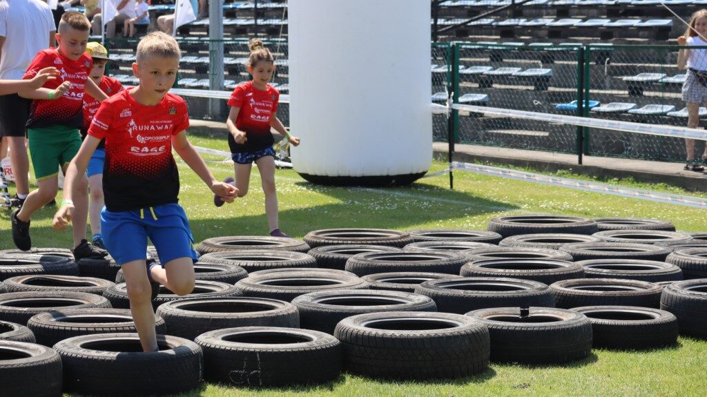 W niedzielne popołudnie na kobyliński stadion przybyły tłumy mieszkańców gminy, zwłaszcza tych najmłodszych. Mnóstwo dzieci bowiem chciało wziąć udział w zmaganiach Runawy Drogbruk Junior. Uczestnicy rywalizowali w dwóch kategoriach wiekowych – 4-8 lat oraz 9-13 lat. Łącznie na linii startu stanęło niemal 400 młodych zawodników i zawodniczek. Na trasie czekało na nich wiele przeszkód.