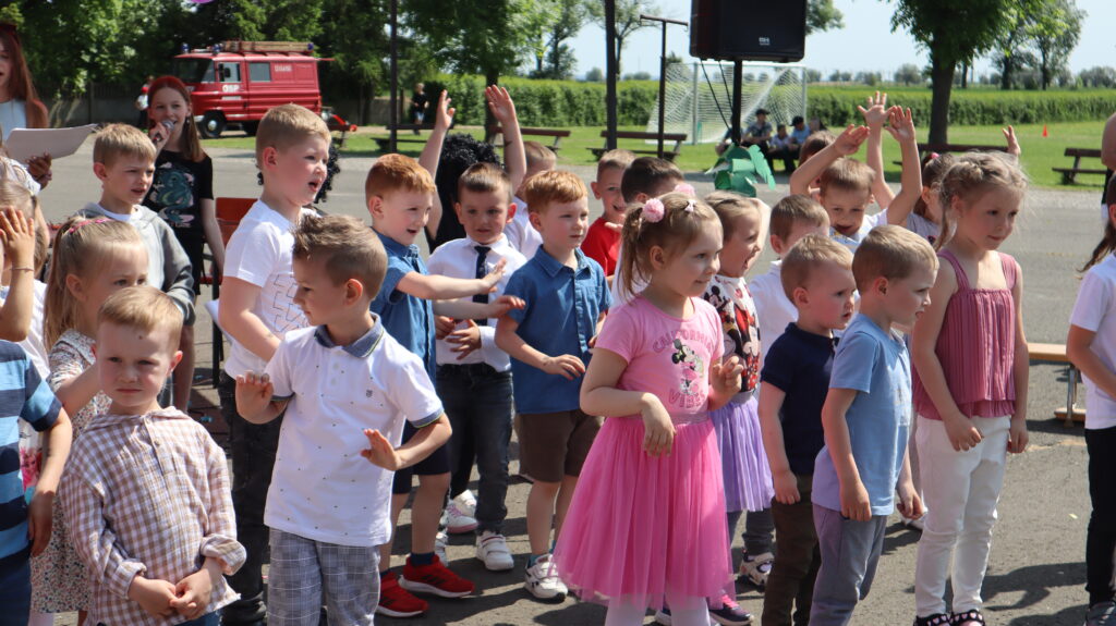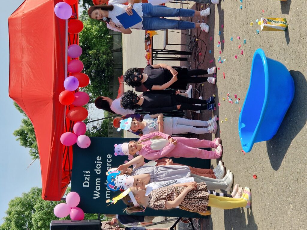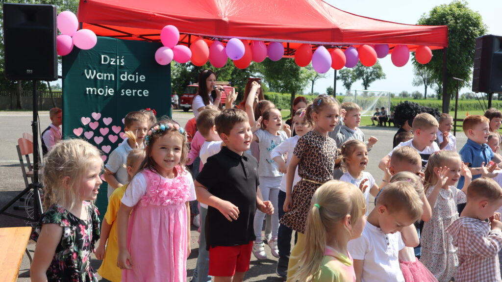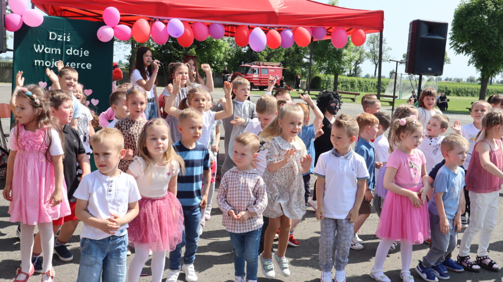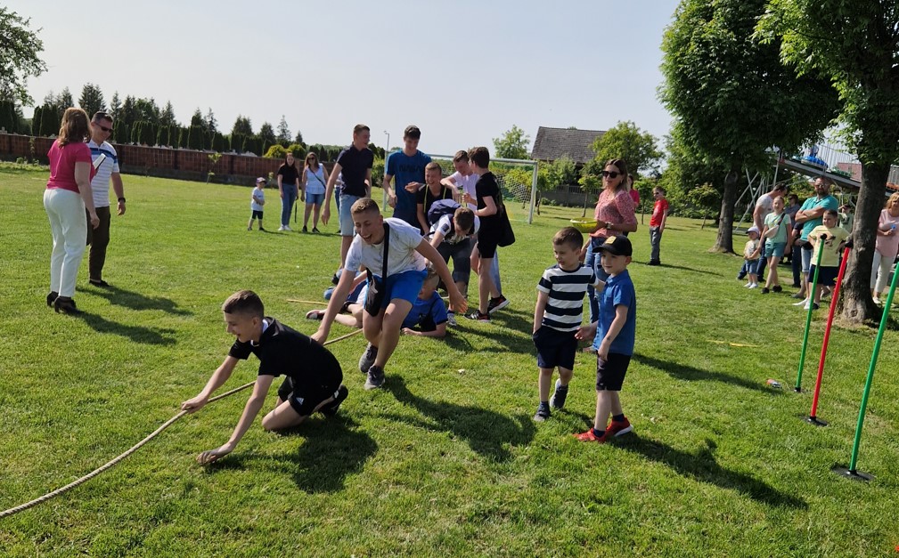 Dzieci wspaniale bawiły się na zamku dmuchanym i zjeżdżalni pontonowej. Mnóstwo zabawy dostarczyły rozmaite konkurencje sportowe. Rozegrano mecz rodzice kontra uczniowie. Można było zrobić sobie piękny brokatowy tatuaż lub pomalować twarz. Nie lada atrakcją okazała się wizyta policji i strażaków. Była więc możliwość dokładnego obejrzenia radiowozu oraz wozu strażackiego. Poza tym strażacy z miejscowej OSP przygotowali specjalne stoisko dla dzieci z możliwością „gaszenia pożaru”. Trzeba było trafić wodą z węża w wyznaczony punkt. Wspólna zabawa przyniosła wszystkim mnóstwo radości.