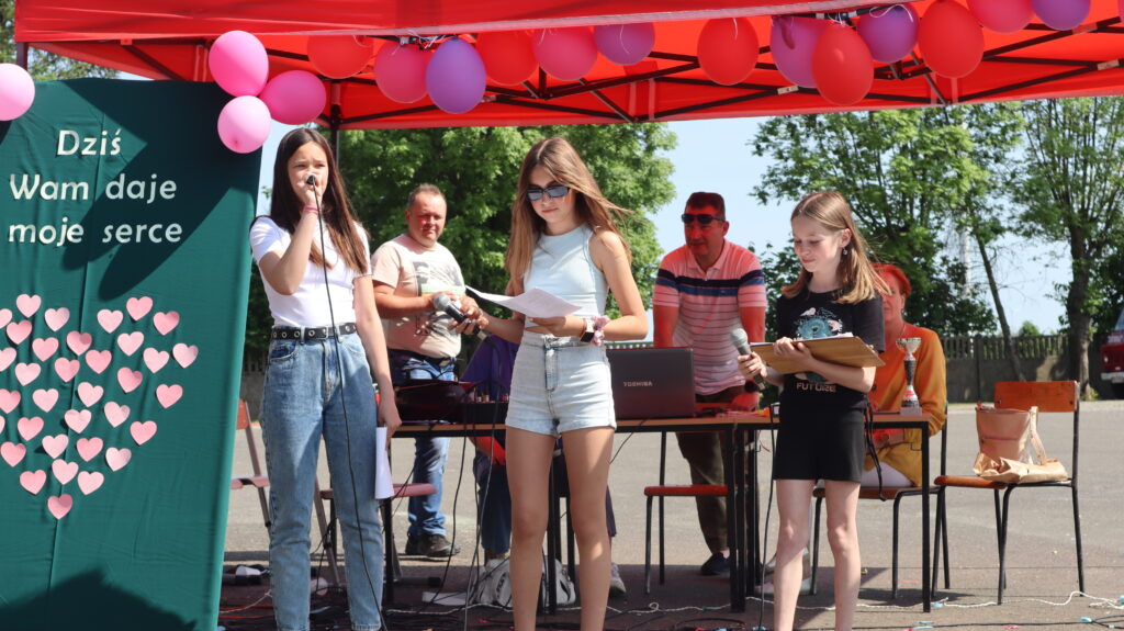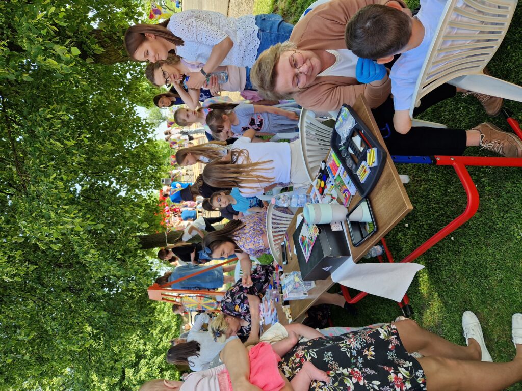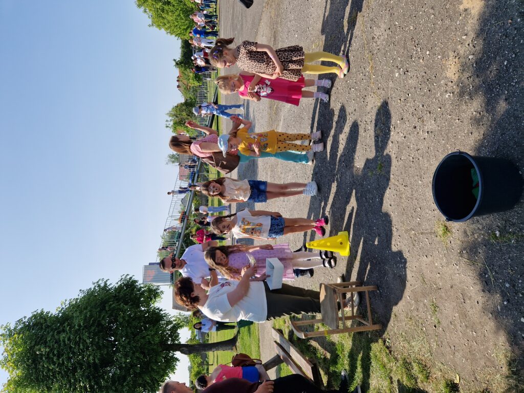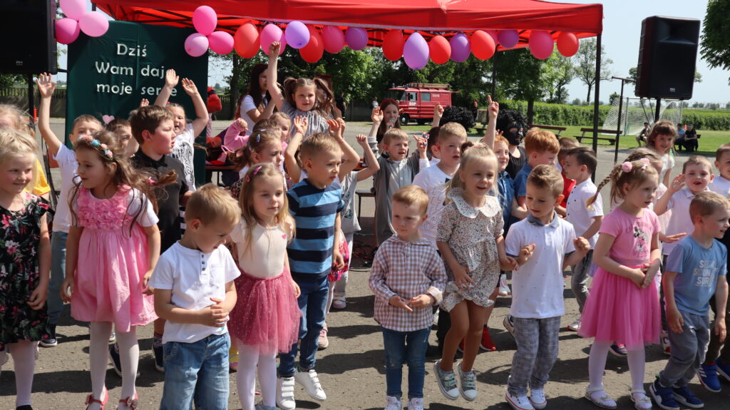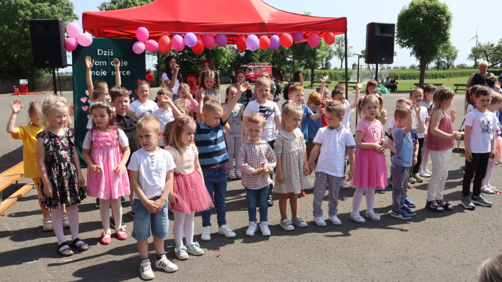 Dzieci wspaniale bawiły się na zamku dmuchanym i zjeżdżalni pontonowej. Mnóstwo zabawy dostarczyły rozmaite konkurencje sportowe. Rozegrano mecz rodzice kontra uczniowie. Można było zrobić sobie piękny brokatowy tatuaż lub pomalować twarz. Nie lada atrakcją okazała się wizyta policji i strażaków. Była więc możliwość dokładnego obejrzenia radiowozu oraz wozu strażackiego. Poza tym strażacy z miejscowej OSP przygotowali specjalne stoisko dla dzieci z możliwością „gaszenia pożaru”. Trzeba było trafić wodą z węża w wyznaczony punkt. Wspólna zabawa przyniosła wszystkim mnóstwo radości.