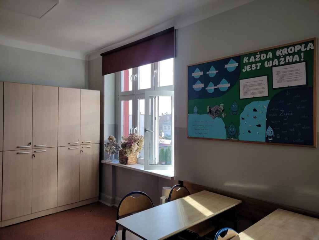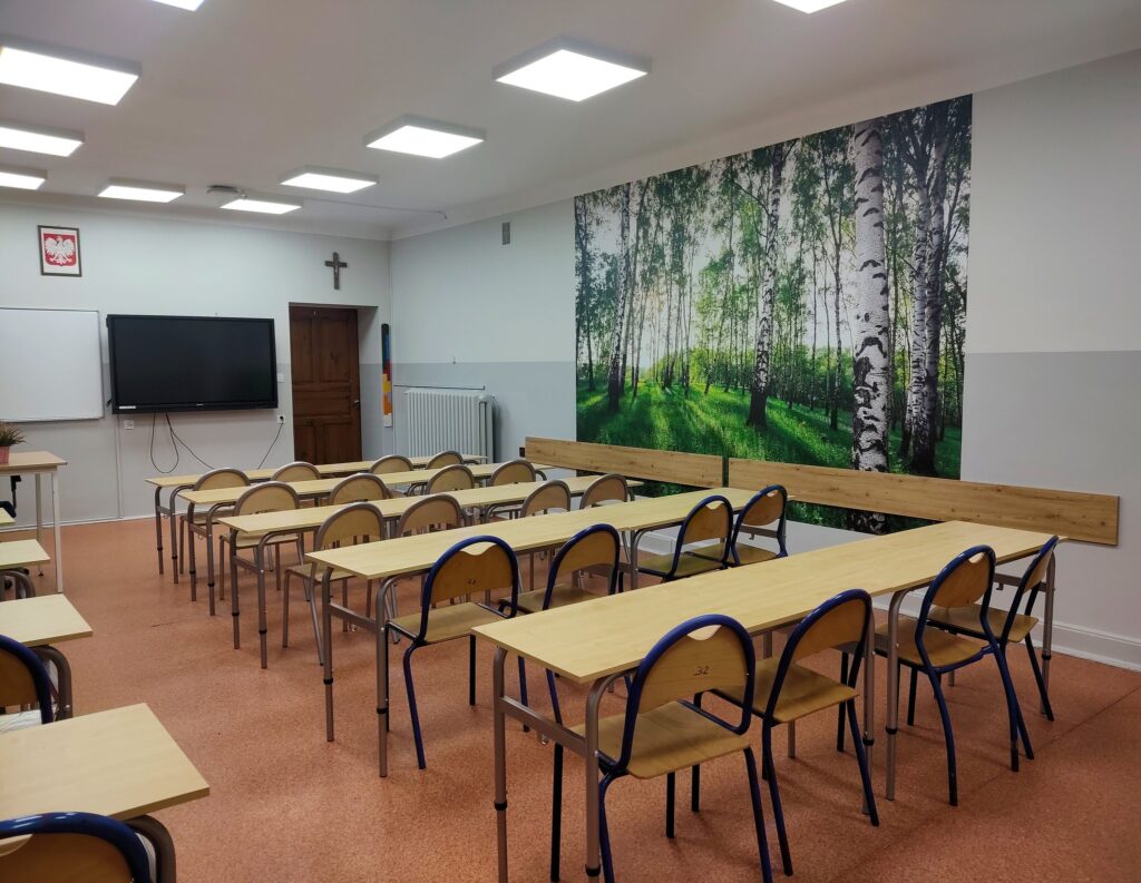Nowa przestrzeń została wyposażona w podstawowe elementy umeblowania, w tym krzesła, stoły, biurko i szafy, a także w monitor interaktywny i laptopy do pracy dydaktycznej. W sali znalazły się również tablice korkowe oraz magnetyczne.