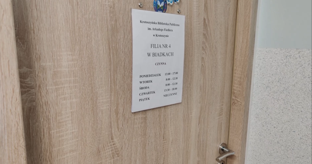 Filia nr 4 Krotoszyńskiej Biblioteki Publicznej im. Arkadego Fiedlera w Krotoszynie zmieniła swoją siedzibę. Od niedawna placówka działa w budynku Szkoły Podstawowej im. Mikołaja Kopernika w Biadkach, oferując czytelnikom nowe, lepiej przygotowane przestrzenie. To ciekawe i przyjazne miejsce, które warto odwiedzić.