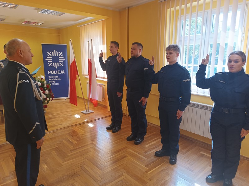 Do służby w policji dołączyli Aleksandra Bocheńska, Krystian Antkowiak, Antoni Panek i Arkadiusz Pawliczak. Ślubowania dokonano w obecności kadry kierowniczej Komendy Powiatowej Policji w Miliczu oraz najbliższych nowych funkcjonariuszy.