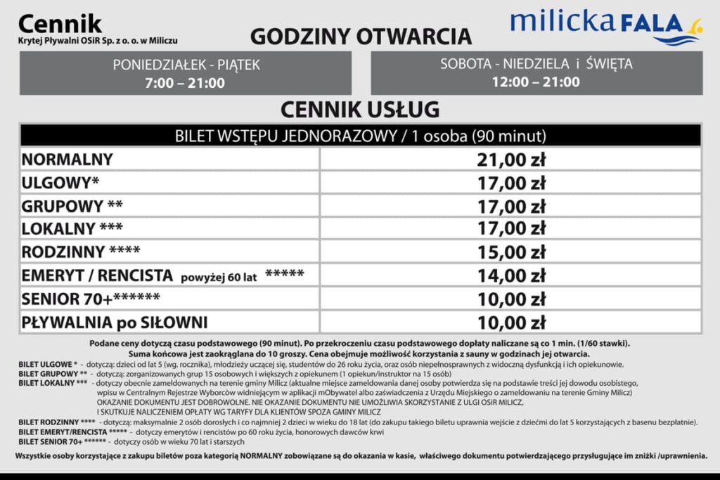 Od 1 stycznia 2025 roku dostępny jest nowy bilet wstępu, nazwany „Lokalnym”. Jego cena wynosi jedynie 17 zł za 90 minut korzystania z basenu i saun, co czyni go bardzo atrakcyjną opcją dla mieszkańców gminy Milicz.