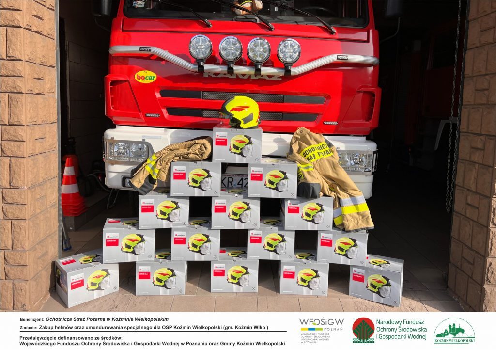 W ramach projektu „Zakup hełmów oraz umundurowania specjalnego dla OSP Koźmin Wielkopolski” jednostka zakupiła 16 hełmów oraz jedno trzyczęściowe ubranie specjalne. Są one zgodne z obecnie obowiązującymi normami bezpieczeństwa oraz wytycznymi dotyczącymi umundurowania strażackiego.