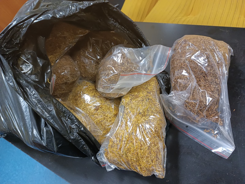 Policyjne ustalenia się potwierdziły – w zatrzymanym pojeździe znaleziono dwa duże worki jutowe, w których znajdowały się mniejsze, poporcjowane woreczki foliowe z zawartością tytoniu, każdy o wadze 400 gramów. Łącznie w samochodzie funkcjonariusze zabezpieczyli blisko 14 kilogramów tytoniu bez znaków akcyzy. Kolejny worek z rozdrobionym, wysuszonym tytoniem, o wadze ponad 6 kilogramów, znaleziono w miejscu zamieszkania 35-latki.