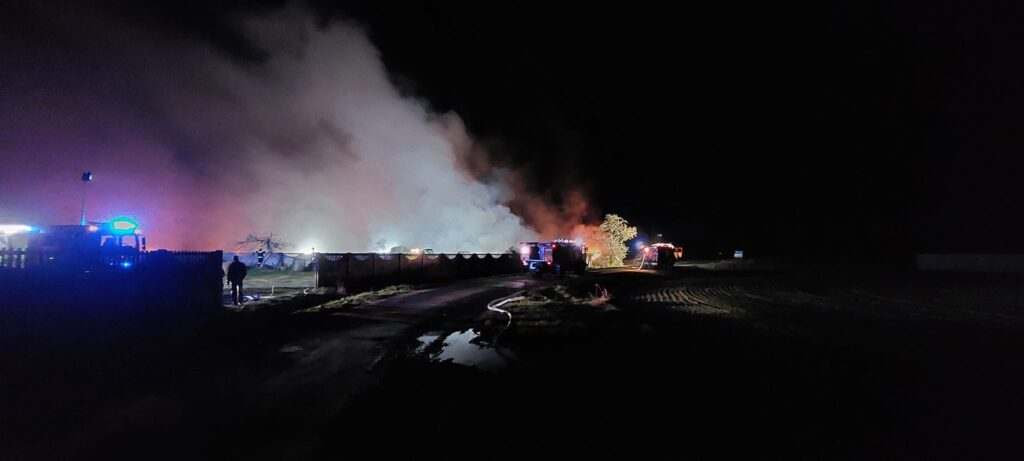 – Z uwagi na bardzo dużą intensywność spalania słomy i towarzyszące promieniowanie cieplne decyzją kierującego działaniami ratowniczymi ograniczono akcję, dostosowując zamiar taktyczny do sytuacji pożarowej. W momencie uzyskania możliwości podania skutecznych prądów wody i wprowadzenia na teren działań sprzętu mechanicznego rozpoczęto warstwowe rozgarnianie słomy ładowarką teleskopową w celu jej dogaszenia. Dbając o ciągłość podawania środka gaśniczego, zorganizowano zaopatrzenie wodne w oparciu o pobliską sieć hydrantową. Po długotrwałej akcji gaśniczej, trwającej ponad sześć godzin, pożar został ugaszony – poinformował st. asp. Mateusz Dymarski z Komendy Powiatowej Państwowej Straży Pożarnej w Krotoszynie.
